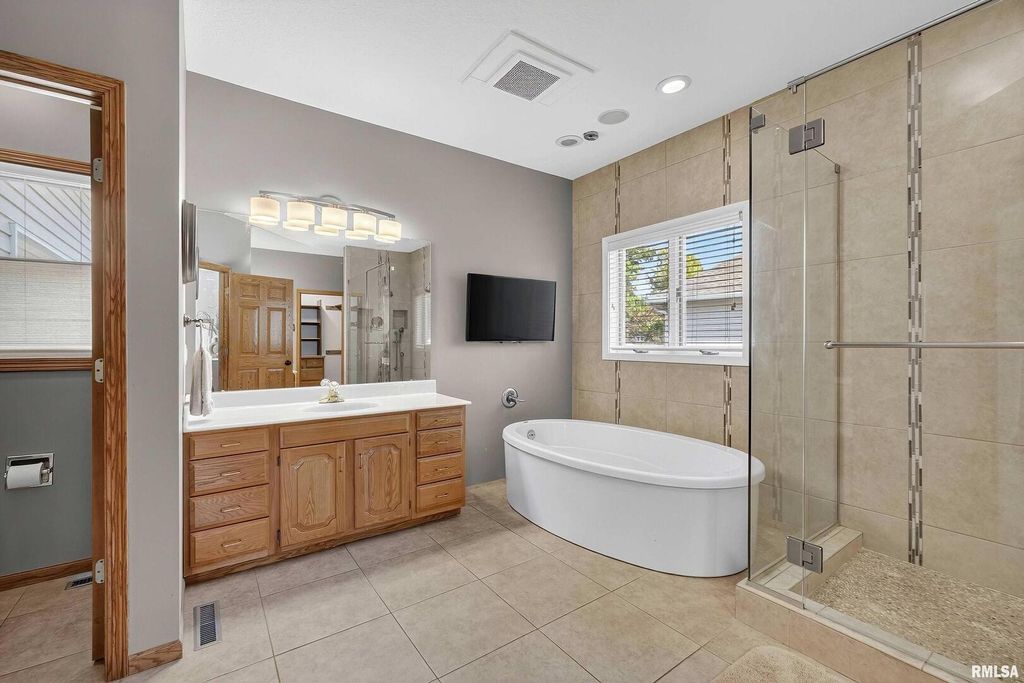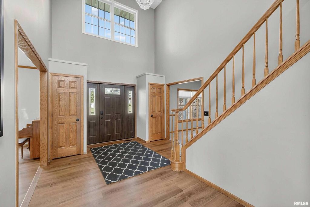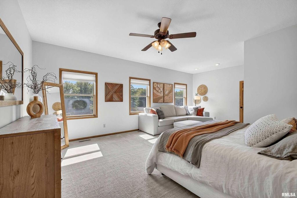 This spacious home, boasting over 5,400 finished square feet, features a thoughtfully designed floor plan. It offers six bedrooms, 4.5 bathrooms, a great room with a fireplace, built-ins, and a connecting butler's pantry, an additional living room, and an updated, oversized kitchen with newer appliances. The kitchen, dining area, and hearth room feature luxury vinyl flooring, while the main and upper levels have newer carpeting. The updated first-floor primary bedroom offers flexibility and could also serve as a mother-in-law suite. This home sits on a gorgeous, nearly 3/4-acre lot at the end of a cul-de-sac in East Davenport. The flexible floor plan, particularly with two primary bedrooms (one on the main level with a sitting area and another upstairs), offers numerous lifestyle possibilities. The walk-out lower level includes a large recreation room, an additional bedroom, and a bathroom. This home is a must-see!