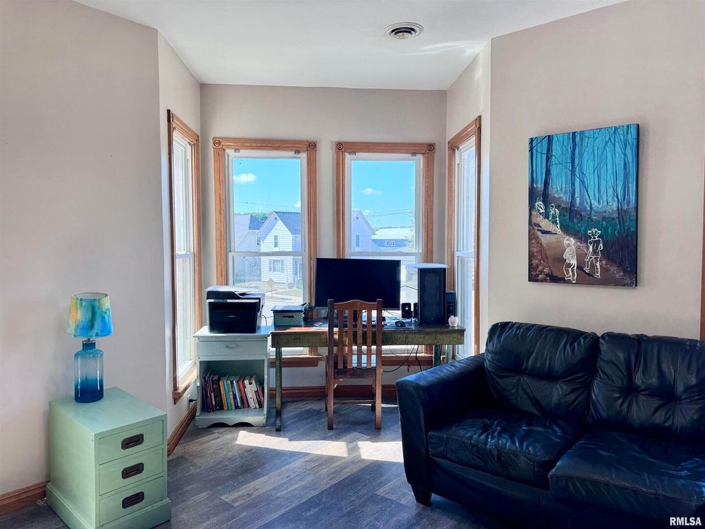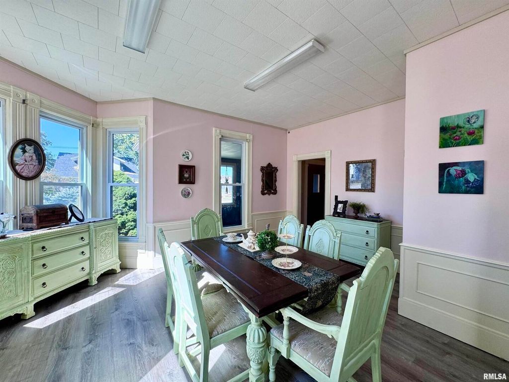 Whether you're looking for a large family home, a place to run a business, or a combination of both; this could be it! Currently being utilized as a family home, the main level hosts a welcoming porch which leads into the main part of the house where you're greeted by a beautiful staircase. To the left you'll find a bedroom, and to the right you'll be greeted by a boastful dining room with SO. MUCH. LIGHT. The majority of the main level currently holds flex space which could be easily converted into additional bedrooms or a kitchen, or both. The entire property is incredibly spacious and could serve a multitude of purposes. With separate entrance points around the main level, the layout supports 2-3 offices or partial commercial use with rental/living potential. Upstairs you'll find an updated and roomy 3 bedroom living space with a beautiful kitchen and a full bathroom. Entrance to the upper level is private and convenient through the attached 2 car garage. In addition to the attached garage, there's a detached THREE car garage with an extra overhead door on the alley side. This property has a fenced in yard and a parking lot. Plenty of room for a camper or boat--or both! There are 2 new furnaces and 2 newer AC units; one for each level with separate controls. New roof & siding. Newer water heater. HIGH TRAFFIC LOCATION right on 4th street near the North Bridge, a stone's throw from the Downtown Fulton District.
