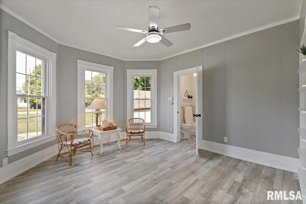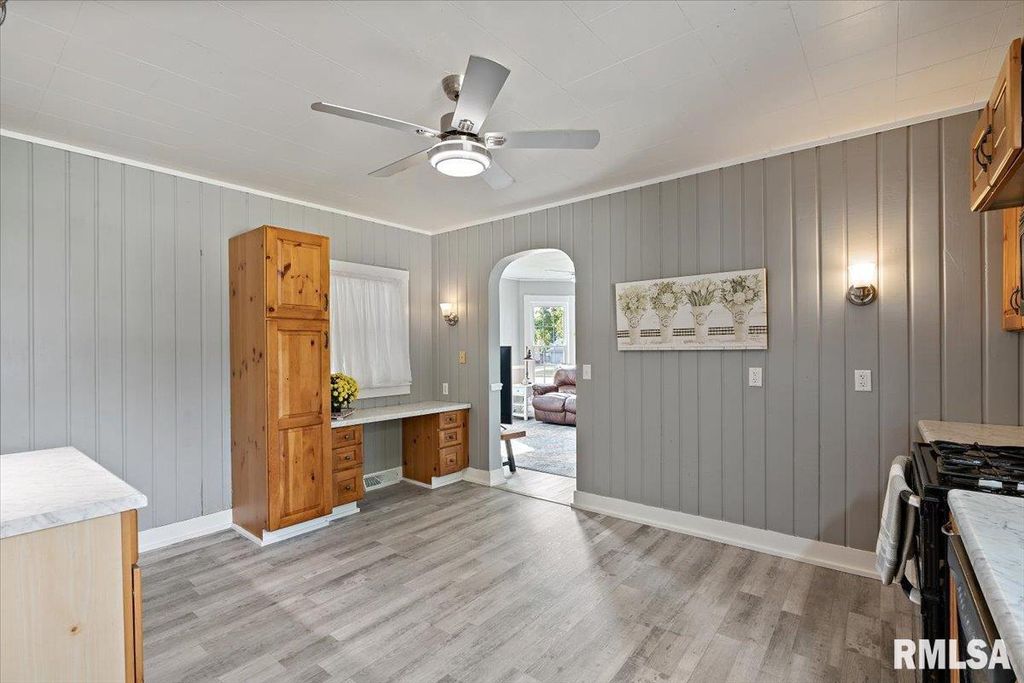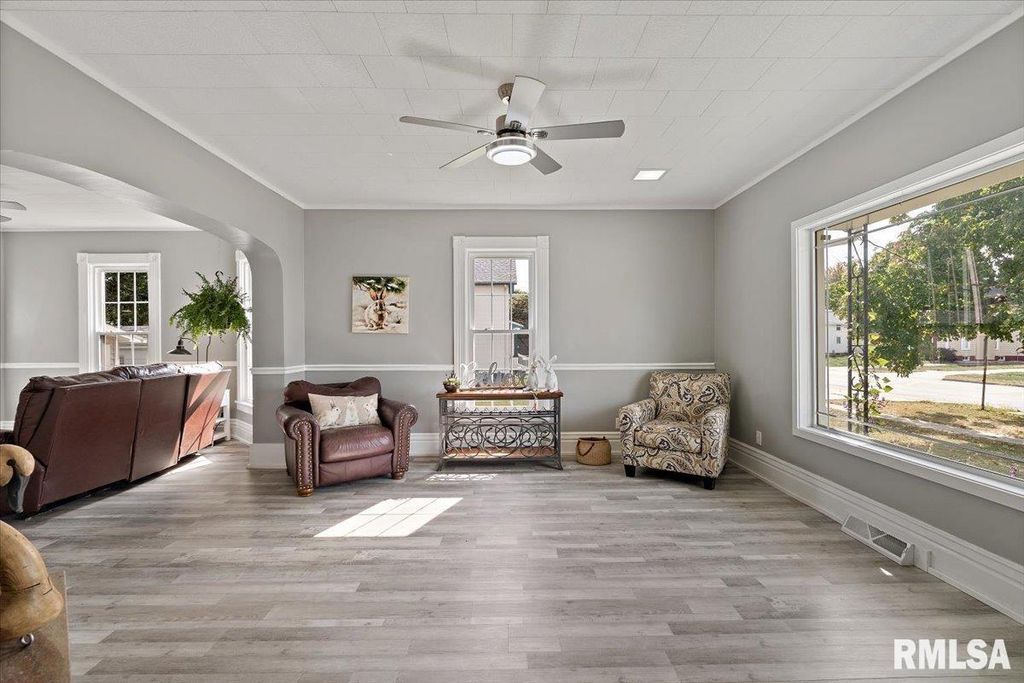 Step into timeless charm with this turn-of-the-century 2-story home featuring 4 bedrooms, 2 baths, and a spacious 3-car garage. Inside, you'll find a freshly painted interior with updated flooring throughout, including luxury vinyl tile and laminate. The kitchen shines with new countertops, fresh paint, warm rustic cabinetry and large pantry. While the main floor bathroom has been beautifully updated. Den/Office could be used as 5th Bedroom! Enjoy both a welcoming front porch and a bright 3-season porch overlooking the fenced yard, complete with an additional shed for storage. Ideally located near downtown, shopping, and parks, this home blends historic character with modern updates.