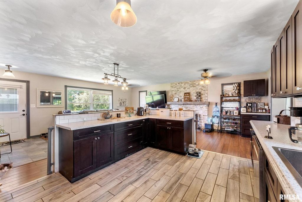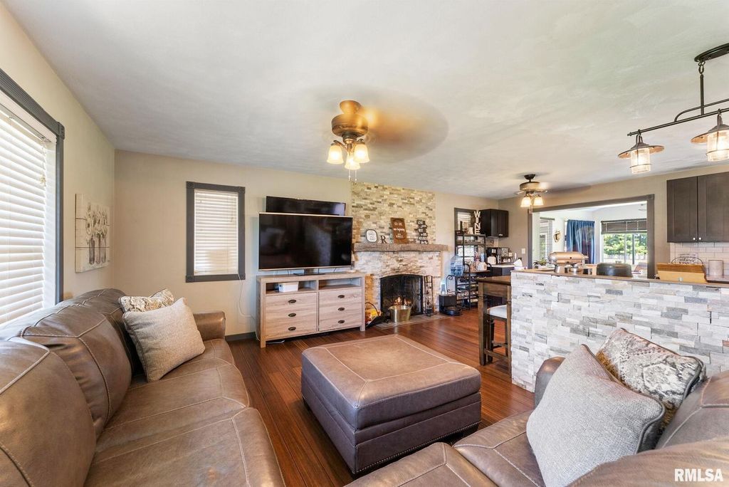 Agent owned. This is everyone's dream, a house in the country on 1 acre with walk in chicken coops and goat sheds. Hens can stay if buyers wants. They lay eggs. A large fenced in back yard and extra parking in back form toys. Driveway large enough for an RV parking and more. Also notice the brick home, it had tuckpointing in needed areas in 2022, chimney was tuckpointed at the top with new caps in 2023. Inside you will find an open concept floor plan with bamboo flooring in the LR, tile in the kitchen, remodeled kitchen in 2021, a quaint informal dining area in front of the fireplace that gets used a lot. 3 season room is used as a formal dining room. Faux wood blinds throughout, 3 season room used as a dining room and gets heated and cooled by stand alone units. The flooring in 2/3 bedrooms was replaced in 2022. Larger bedroom has a 1/2 bath with two access doors. New Iron curtain and water softener was replaced in 2023. Fenced back yard. The mower and golf cart both work and stay with an acceptable offer.