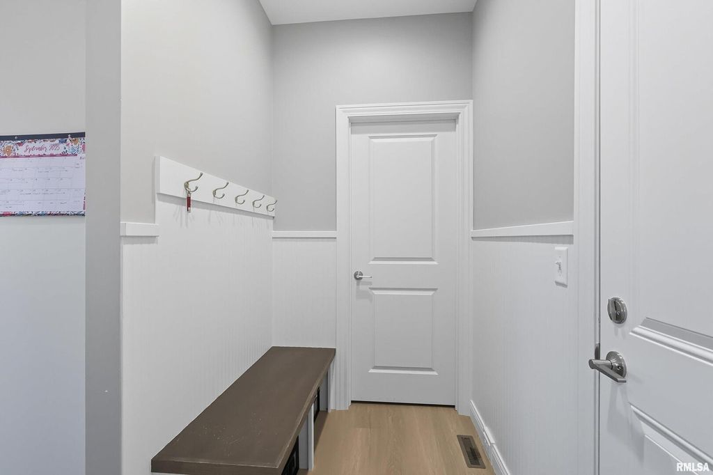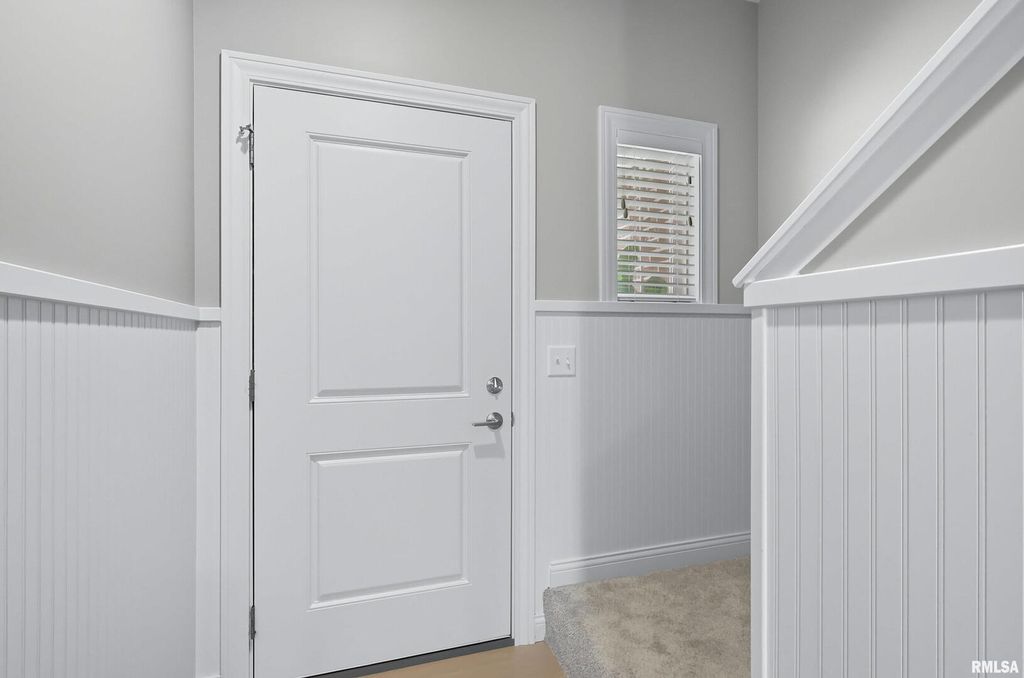 The bright foyer greets you with a window in the stairwell and bead board down the hallway. Luxury vinyl plank flooring flows from the foyer throughout the great room, kitchen and back hallway with a mud room with cubbies and a walk-in closet. Quartz countertops and 9' ceilings! The slider opens to a patio and freshly sodded and landscaped back yard. Vaulted primary suite with double sinks and the walk-in closet is open to the large second floor laundry with folding table. The main bath has double sinks as well. The basement is ready to finish with a rough-in for a bath and egress window for a bedroom and/or rec room. HOA includes lawn maintenance and snow removal. Enjoy carefree living in this beautiful townhome near many conveniences and the bike path!