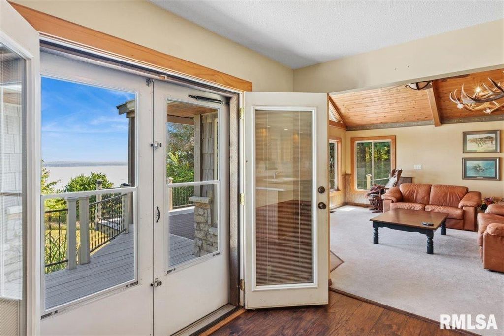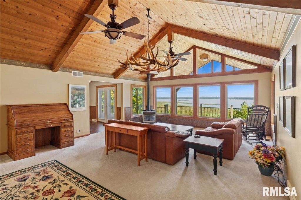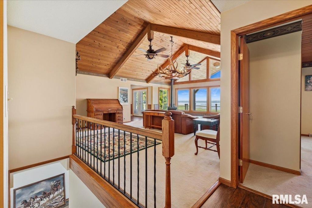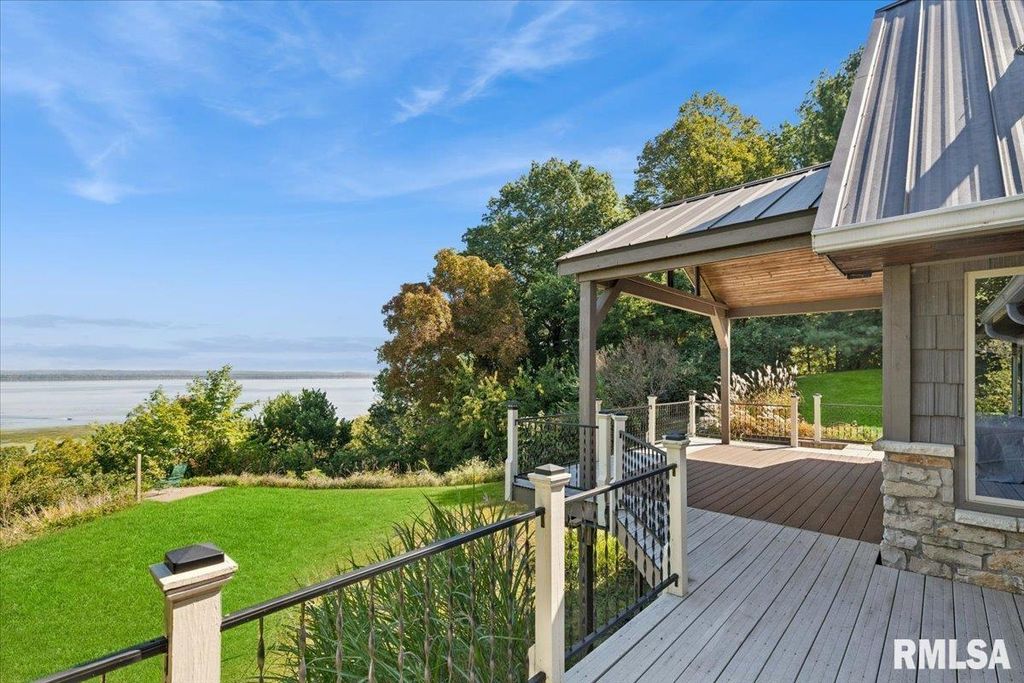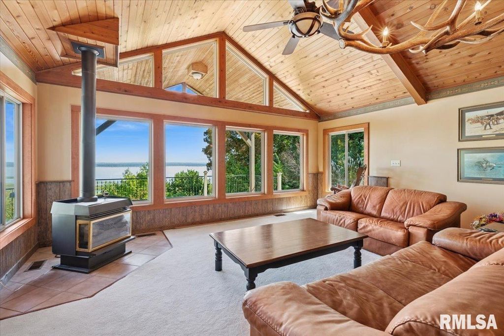 Discover Seclusion and Luxury on the Mississippi Bluffs! Perched high above the majestic Mississippi River, this exceptional 3-bedroom residence offers unparalleled privacy on 10 beautifully wooded acres. The main level is designed for elegant living, featuring vaulted ceilings that enhance the natural light, a dedicated formal dining room, and seamless access to large decks perfect for taking in the stunning panoramic views. The home is as efficient as it is beautiful, featuring a modern geothermal heating system. Outdoor enthusiasts will appreciate the mature woods and dedicated walking trails. For the hobbyist or collector, a massive 36'x56' steel utility building offers incredible space and storage potential. The basement provides even more utility with a spacious room and dedicated shop area. This secluded property is a private sanctuary offering a unique blend of custom features and natural beauty.