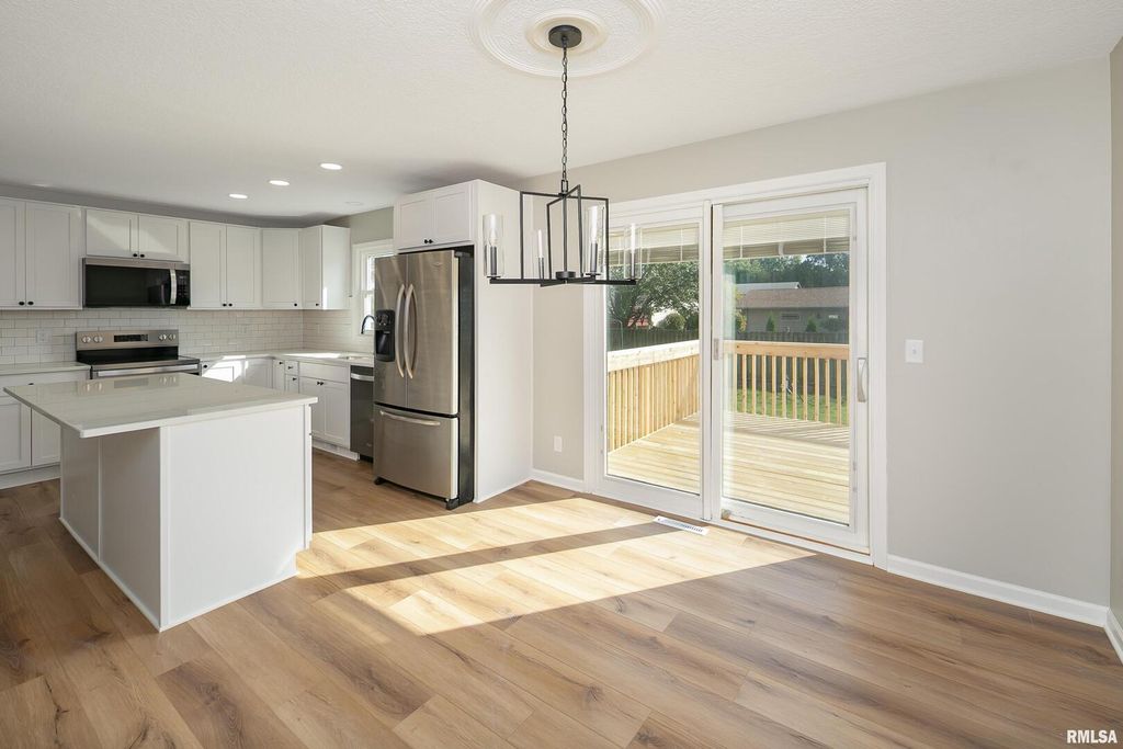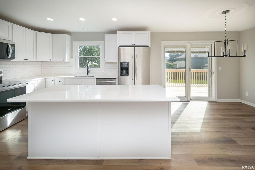 Welcome to this fully updated two-story, truly turn-key and ready for its new owners. Featuring 4 bedrooms, 2.5 bathrooms, and an attached 2-car garage, this property offers both comfort and style. Step inside and you'll feel like you've entered a new-construction home. The main level showcases luxury vinyl plank flooring throughout, a spacious living room with a fireplace and sliding glass doors leading to a large rear deck, and a fenced yard perfect for entertaining. The kitchen is a true highlight, featuring white cabinetry, stainless steel appliances, a center island with breakfast bar, and a timeless subway tile backsplash. The main level also includes a half bath, an office, a formal dining room, and a front family room. Upstairs, you'll find four bedrooms and two full baths. The primary suite features LVP flooring, a private ensuite bath, a walk-in closet, and a dressing table. The basement offers a blank canvas, ready to be finished to your taste. Laundry hookups in kitchen pantry and basement. Buyer and buyer's agent to verify all information, including square footage, room sizes, school zones, taxes, exemptions, and zoning. Measurements are approximate.