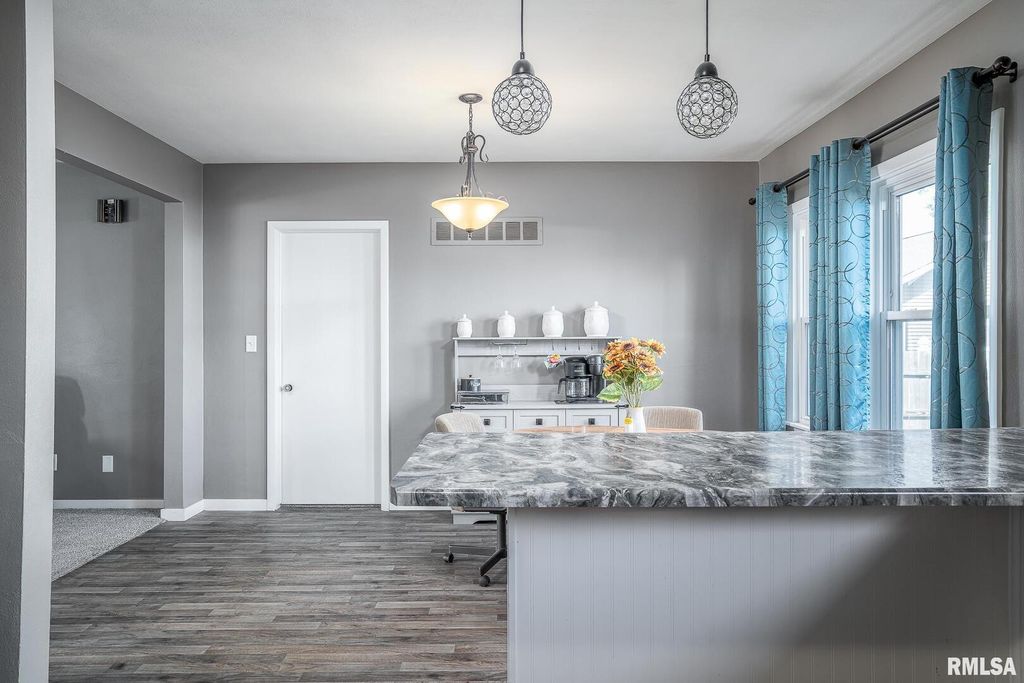 Welcome to this well-maintained ranch-style home conveniently located in the heart of Eldridge, close to parks and local amenities. This home offers a great blend of comfort, functionality, and modern updates. The home features an updated kitchen with newer cabinetry, tile backsplash, and a spacious breakfast bar. Many newer windows throughout bring in natural light and improved energy efficiency. The main level offers comfortable living space with newer carpet and an easy flow between rooms. The lower level includes ample storage, a roughed-in half bath, and potential for additional living space or a workshop. Step outside to enjoy a fenced backyard ideal for relaxing or entertaining. Seller is offering a HWI home warranty $595.00