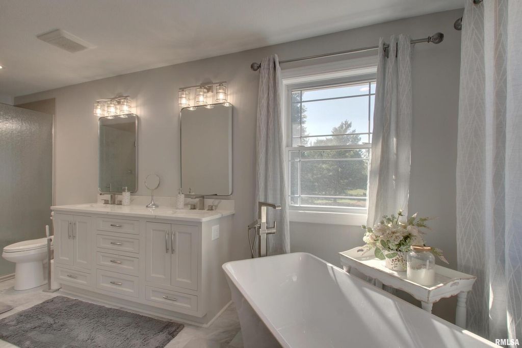 Luxury Living in Windermere Subdivision! This sprawling 5,000 total finished sq. ft. ranch features fresh renovations, timeless design and modern elegance. The exterior showcases a pristine blend of stone & stucco, complimented by exquisite landscaping new in 2024. Inside, discover a wealth of bonus features including a stunning stone fireplace, soaring cathedral ceilings & charming exposed beams. This home offers 2 separate living quarters, each thoughtfully designed with spacious living rooms and fully equipped kitchens, complete with appliances that convey. Lower level is a true highlight, featuring a luxurious ensuite with large walk-in closets, private patio & electric stair chair for easy access, ideal as a perfect mother-in-law suite or guest retreat. Enjoy outdoor living on the brand-new deck framed with rod-iron rails, perfect for entertaining or relaxing. The extra-deep, 2-car garage offers ample space & accommodated up to 3 vehicles, proving abundant storage & parking solutions. Updates include new roof and central air in 2024, interior and exterior repainted in 2023, 2.5 bathrooms fully remodeled with new flooring, cabinets, sinks, tall toilets & 2 onyx showers in 2023. The gourmet kitchen, bedrooms & main level received an update in 2023 with elegant hardwood floors, completing this homes transformation into a modern masterpiece!