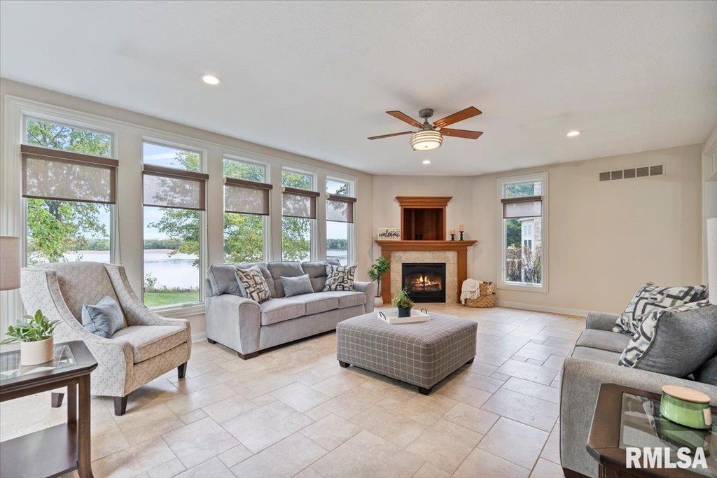 Welcome to your dream river-front retreat! This Stately home is nestled atop a scenic bluff with sweeping views of the Mississippi River and Princeton Beach and private access to the shoreline. Enjoy a generous 3000+ sq ft of thoughtfully designed living space with 5BR/3.5 BA. Built in 2004 with top-tier materials and construction details such as Hardie cement board siding, partial brick exterior, dual geothermal heating and cooling system for efficient year-round comfort and central vacuum system.Step inside to discover an open and airy vaulted great room anchored by gorgeous wood built-ins, a gas fireplace and walls of windows framing the river view beyond.The chef's kitchen is a standout with professional-grade appliances, a double oven, Wolf cooktop, Sub-Zero refrigerator, generous pantry and a breakfast bar with seating. An adjacent sunroom/family room invites you to linger enjoying a spectacular river view, fireplace and a cup of coffee. The main floor Primary Suite is a true sanctuary with oversized garden tub, separate shower, double sinks, linen closet, skylight and walk-in closet. The main level office/study with built-ins is perfect for remote work.Upstairs, three bedrooms offer flexibility. One suite with full bath and two bedrooms that share bathroom. The spacious basement is partially finished with a fifth bedroom and option for additional finished area,hobby area, storage closets with shelving, cabinets. 3-car garage