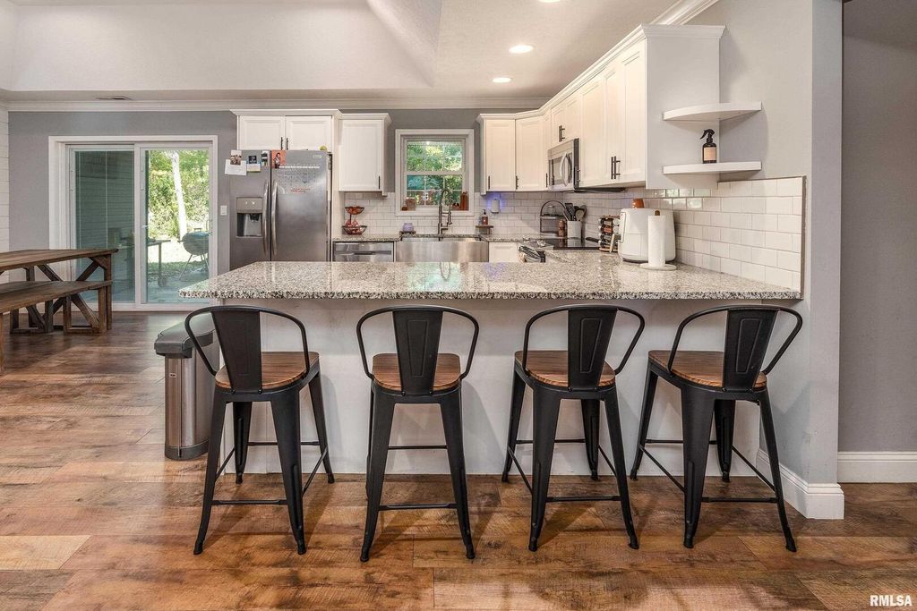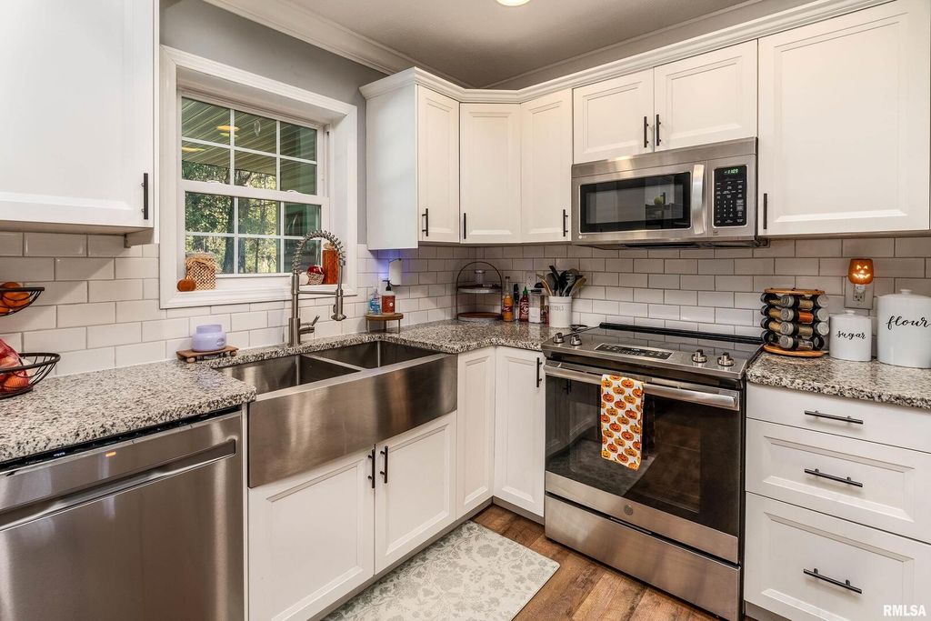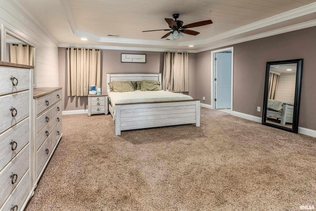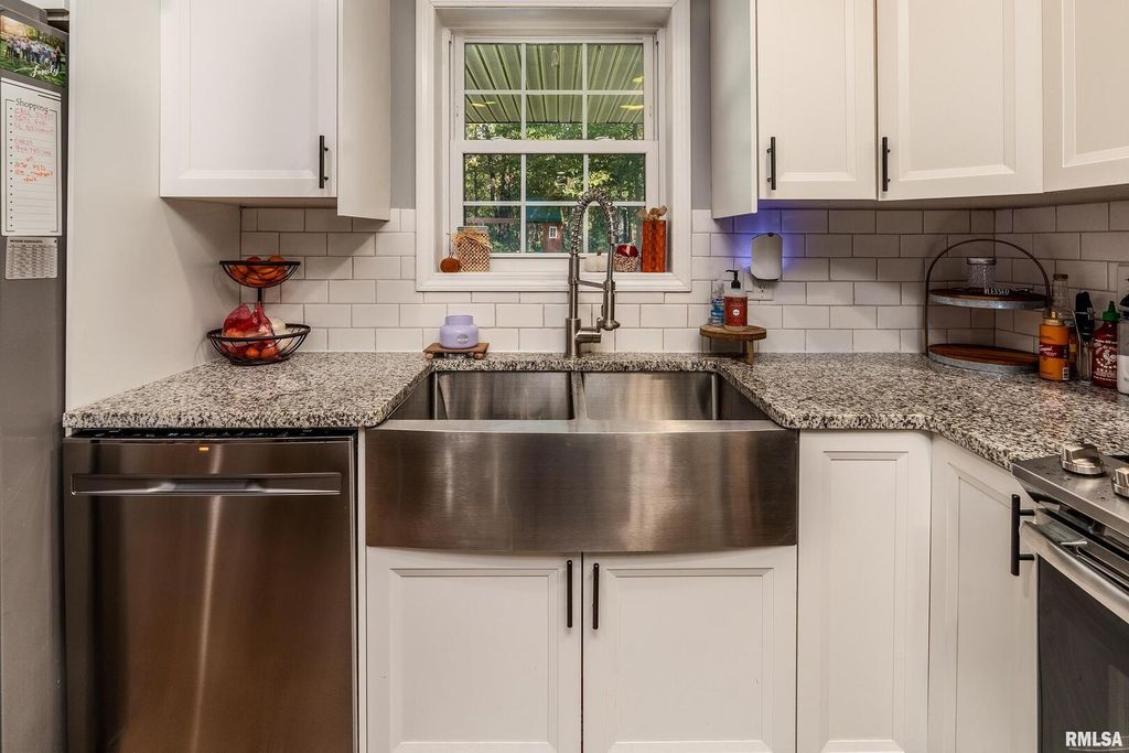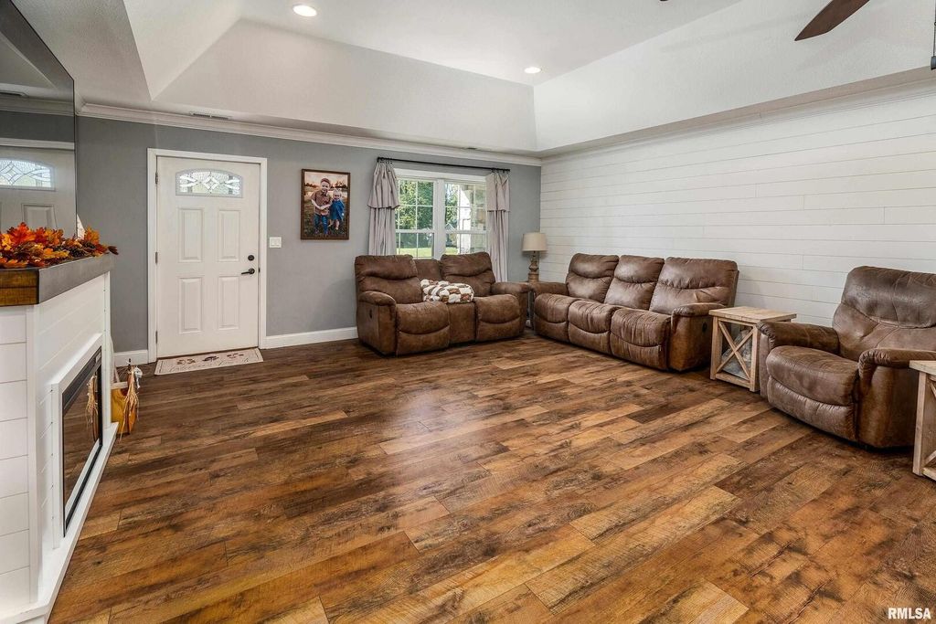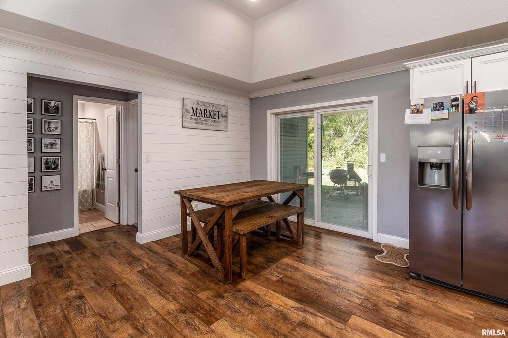 Modern comfort meets cozy charm in this beautiful 3-bedroom, 2-bath ranch in Carterville. Built just 5 years ago, this 1,750 sq. ft. home offers an open, airy layout with shiplap accents and fresh modern decor that feels warm and welcoming. The kitchen shines with high-end finishes, sleek countertops, and plenty of space to gather. The primary suite features a relaxing soaking tub and a large walk-in closet you'll love. Step outside to unwind on the back patio or take advantage of the brand-new oversized pole barn-perfect for projects, storage, or outdoor toys. With energy-saving solar panels and thoughtful design throughout, this home is the perfect blend of modern style and everyday comfort.