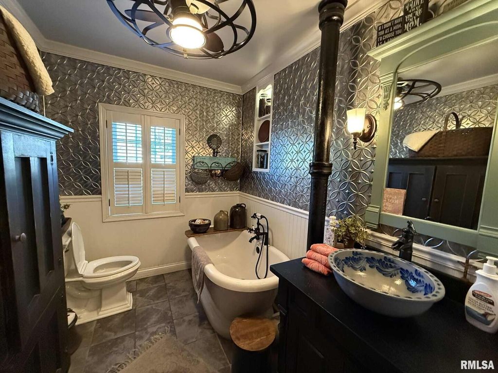 Charming Brick Home with Timeless Character on a Beautiful Corner Lot! This all-brick 4-bedroom, 3-bath home blends classic character with modern comfort and country-inspired charm. From the inviting foyer to the cozy living room fireplace, with over 3700 sq ft every space feels warm and welcoming. Inside, you'll find hardwood floors throughout most of the home and slate flooring in the kitchen. The kitchen features stainless steel appliances, abundant cabinetry, and plenty of space for cooking with a dining room that's perfect for entertaining. The main level includes a convenient bedroom and full bath featuring a beautiful claw-foot soaking tub - the perfect spot to unwind while adding a touch of vintage character. Upstairs offers two large bedrooms and another full bath. The finished basement adds a fourth bedroom, additional bath, and extra living area perfect for guests, a home office, or recreation space. The attic provides excellent storage or the potential to finish for even more living space. Enjoy the well-manicured corner lot with mature landscaping, fenced yard, and a charming covered back porch ideal for relaxing outdoors. The gated entry leads to the impressive all-brick detached garage, adding both convenience and curb appeal. Located near the hospital, grocery stores, and downtown, this home offers timeless charm, quality craftsmanship, and a location that can't be beat!