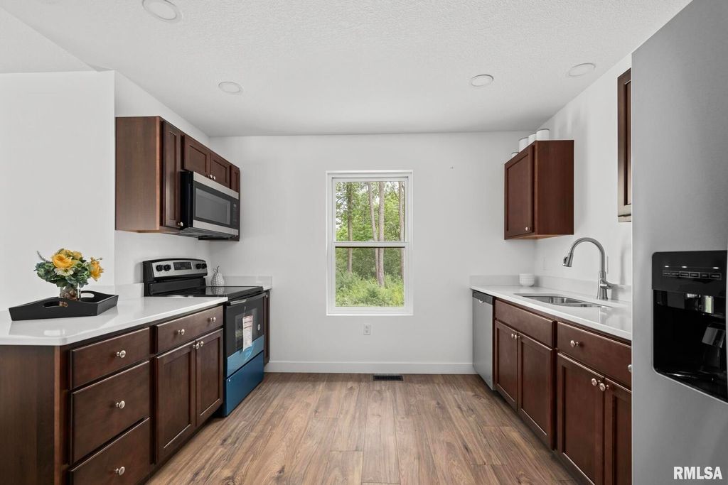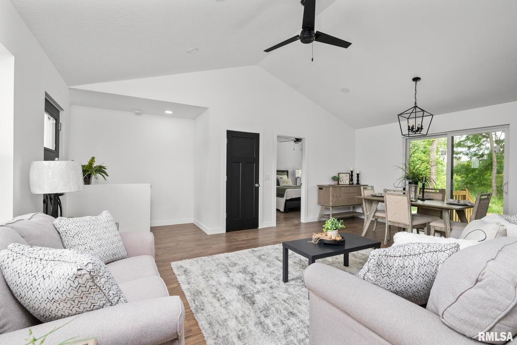 SELLER FINANCING OPPORTUNITY! COMPLETED New Construction tucked away in the beautiful village of Carbon Cliff just minutes from Silvis! Features modern curb appeal with vertical shiplap siding and a huge front porch for entertaining. Entering the front door, you'll find vaulted ceiling with spacious open concept living. A beautiful cherry-colored cabinet kitchen with all appliances. The main floor laundry is off the kitchen and across from the deep garage. There are two bedrooms on the main floor, along with two full baths, the 3rd bedroom and full bath are in the cozy finished basement. The primary suite has a view of the backyard's private trees, a 9 x 7 walk in closest and a gorgeous custom tiled bath. The builders designed this home with quality materials and craftmanship, 2 x 6 Construction, R49 in ceilings, R21 in walls, Quartz countertops, energy efficient LED lighting, engineered flooring, Anderson Windows.