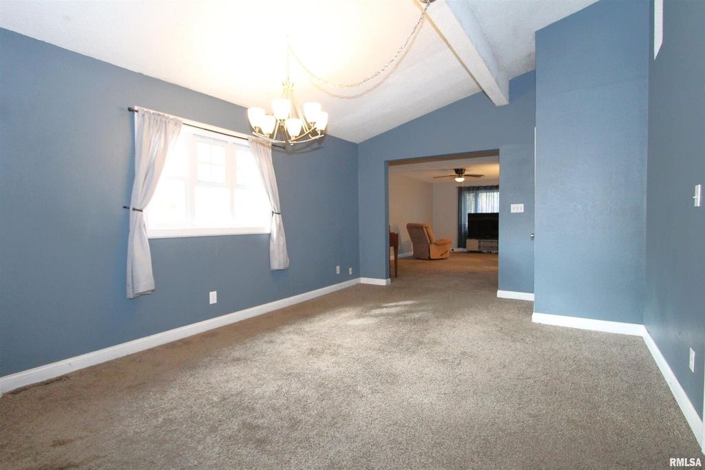 Welcome to this cozy 3-bedroom, 1-bathroom ranch home, perfectly situated on a sizable corner lot. The spacious living room flows effortlessly into a dining room highlighted by a vaulted ceiling, creating an open and inviting atmosphere. In the dining room, you'll find a convenient coat closet and a second closet concealing the main-level laundry. The kitchen offers ample counter space and cabinetry for all your cooking needs. Enjoy your morning coffee on the open front porch or relax in the versatile three-season back porch, a perfect extension for dining and entertaining. The property also features a detached three-car garage, which includes a bonus workshop area.