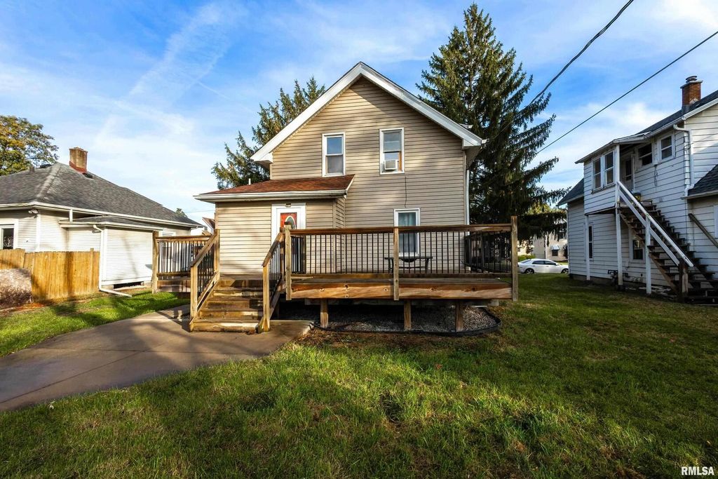 Nestled in the heart of Davenport, this charming 2-bedroom, 1.5-bath, 1.5-story home offers timeless character and a convenient central location. A cozy enclosed front porch welcomes you into the main level, which features a functional open layout perfect for everyday living and entertaining.The main floor includes a comfortable family room, a formal dining area, and a spacious kitchen enhanced by luxury vinyl plank flooring, modern finishes, and ample cabinetry. A convenient half bath adds practicality for guests.Upstairs, you'll find two generous bedrooms, each with walk-in closets, sharing a full bathroom highlighted by a dual vanity and stylish glass tile accents. Step outside to enjoy a large backyard with an oversized wood deck ideal for relaxing or hosting gatherings. Additional features include a storage shed, a two-car oversized garage, and an extra parking slab.