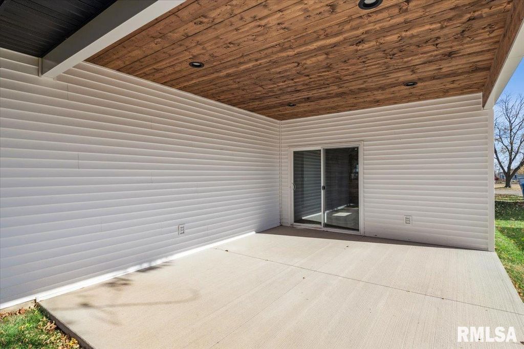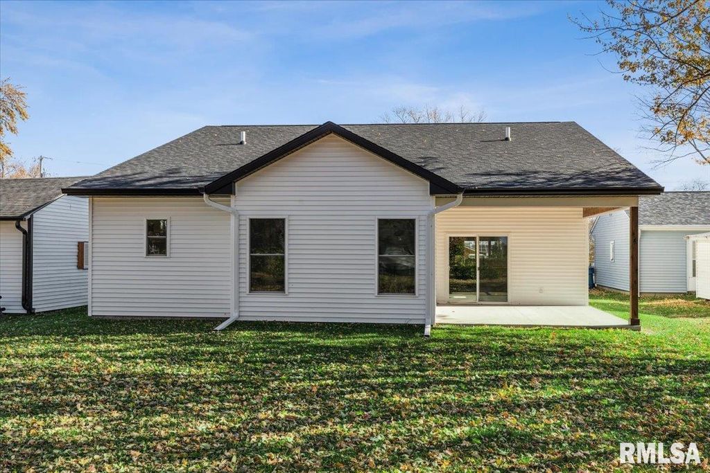 Welcome home! This 3 bedroom 2 bath home offers exceptional features designed for comfort and modern living, including zero-step entry and a spacious open floor plan. The kitchen is beautifully appointed with custom cabinetry, quartz countertops, and a tile backsplash. The primary suite boasts a walk-in closet and a custom tile shower. For added functionality, the mudroom incorporates the laundry area and a large walk-in pantry, which is reinforced to double as a safe room. Outside, the back patio doors lead to a covered patio, providing a perfect space for relaxing outdoors.