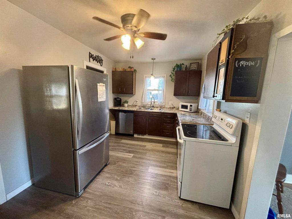 Welcome home to this beautifully maintained property situated near parks, an elementary school, and downtown shopping-offering convenience and comfort right at your doorstep. The newly remodeled main floor features fresh paint, new carpet, and stylish vinyl flooring throughout, creating a clean and modern feel. Enjoy not one, but two adorable porches-an open front porch perfect for morning coffee and an enclosed back porch ideal for relaxing in any season. This home boasts numerous updates, including siding, windows, electrical, and a newer water heater, giving you peace of mind for years to come. The unfinished basement is very clean and flexible-use it as a workout area, home office, hobby room, or simply extra storage space. Laundry is also located on the lower level. Car enthusiasts and hobbyists will love the insulated, heated 2-car garage equipped with its own amp box! If you're looking for a move-in-ready home in a fantastic location with thoughtful updates, this one is a must-see!