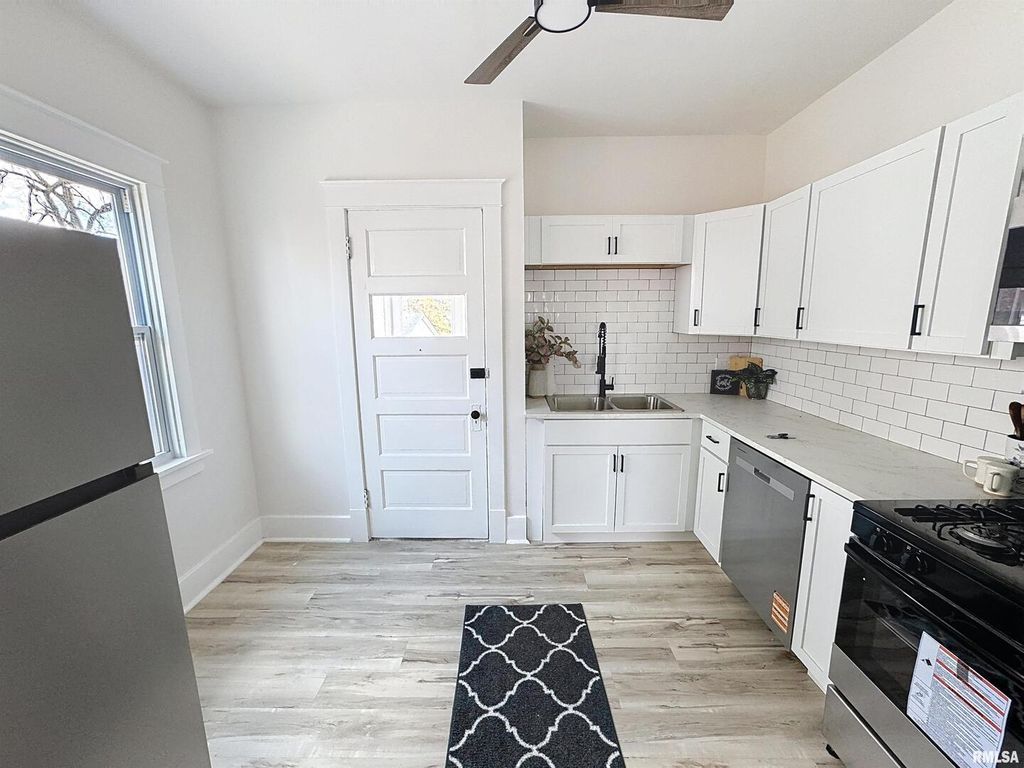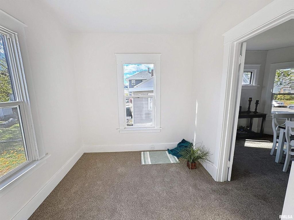 3-bed, 1-bath home in Moline, beautifully renovated inside and ready to impress! This 1.5-story home features new flooring throughout, new windows, a brand-new kitchen, and a fully updated bathroom. The main floor offers a spacious layout with a living room, family room, formal dining room, office/den, kitchen, and bathroom. Upstairs, you'll find three comfortable bedrooms. The full basement provides abundant storage space, and the backyard includes two 1-car garages for parking and extra storage. Conveniently located next to Wharton Field House and Browning Field. Don't miss your chance to see this move-in ready home! Seller is a REALTOR Licensed in IA, IL & FL