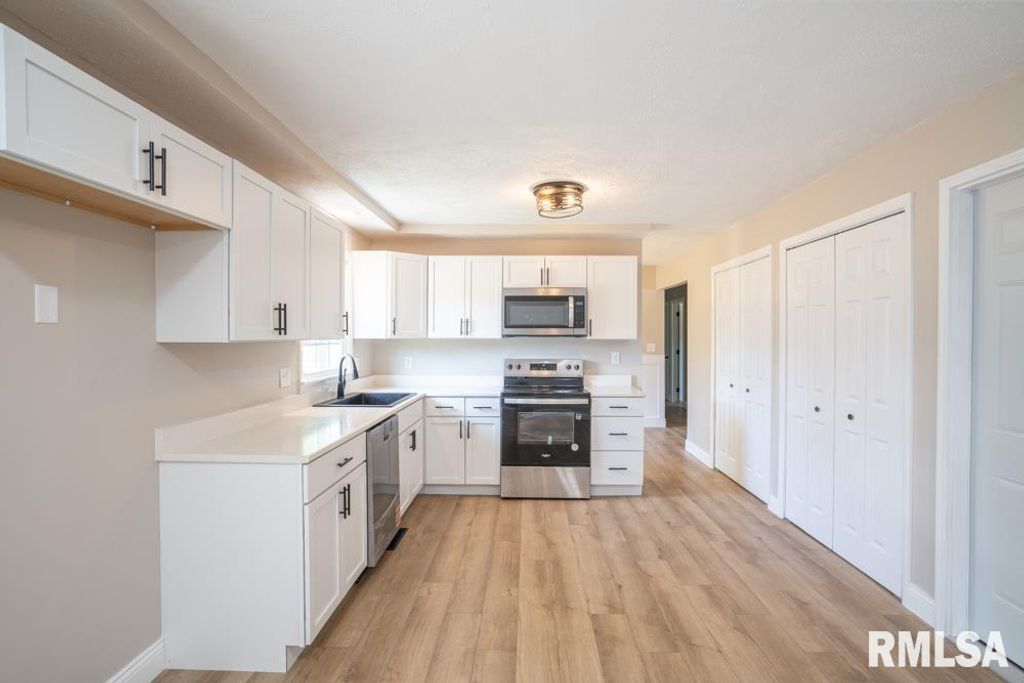 Welcome to this beautifully updated 3 bed, 2 bath ranch in a peaceful Herrin neighborhood! From the moment you pull up, you'll notice the fresh landscaping and welcoming covered front porch. Step inside to find gorgeous new luxury vinyl plank flooring and tons of natural light streaming through large living room windows. The living room flows right into a formal dining area, perfect for gatherings. The spacious kitchen is a showstopper with brand-new white cabinetry, loads of storage, and a cozy new electric fireplace. All three bedrooms are generously sized with plush carpet, while the primary bathroom includes a stylish new vanity, updated light fixture, and sleek flooring. Enjoy morning coffee or weekend BBQs out back with a sliding glass door leading to an enormous, fenced yard, complete with a concrete patio and small handy shed. Other updates include new siding, trim, light fixtures, vanities, garage door, and more. With 1,360 square feet of move-in-ready charm and an attached 2-car garage, this one checks all the boxes! Call today for a showing!
