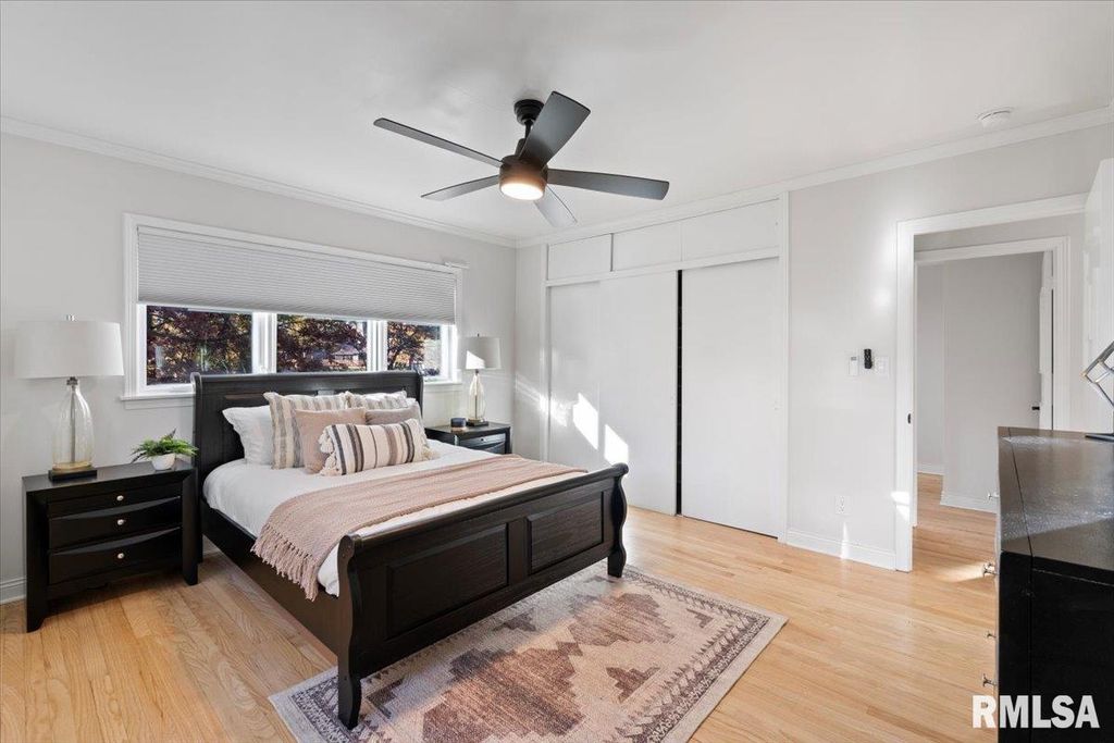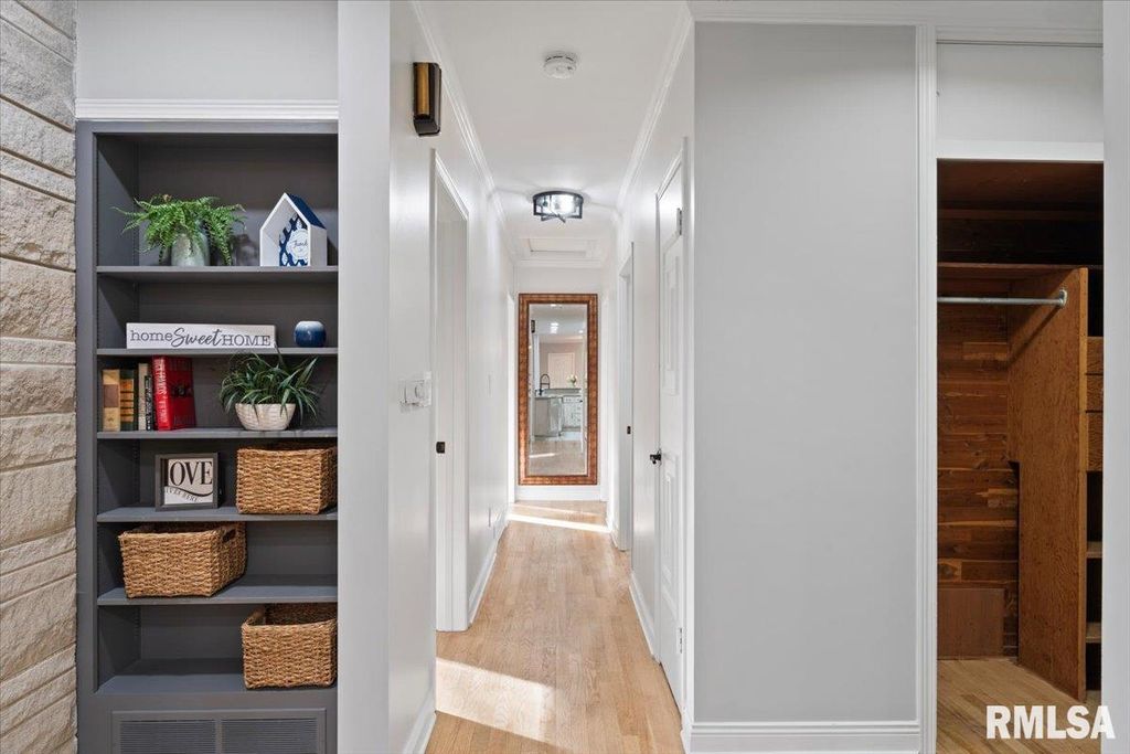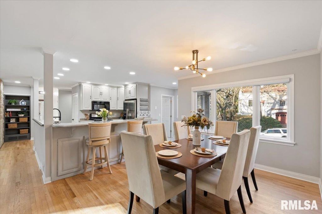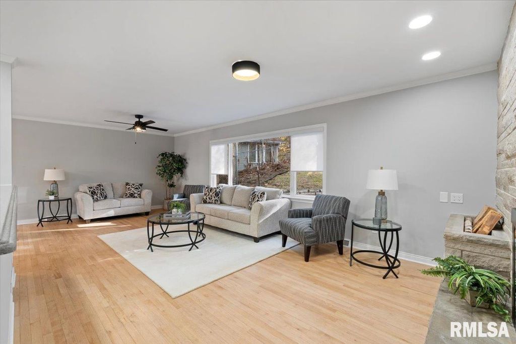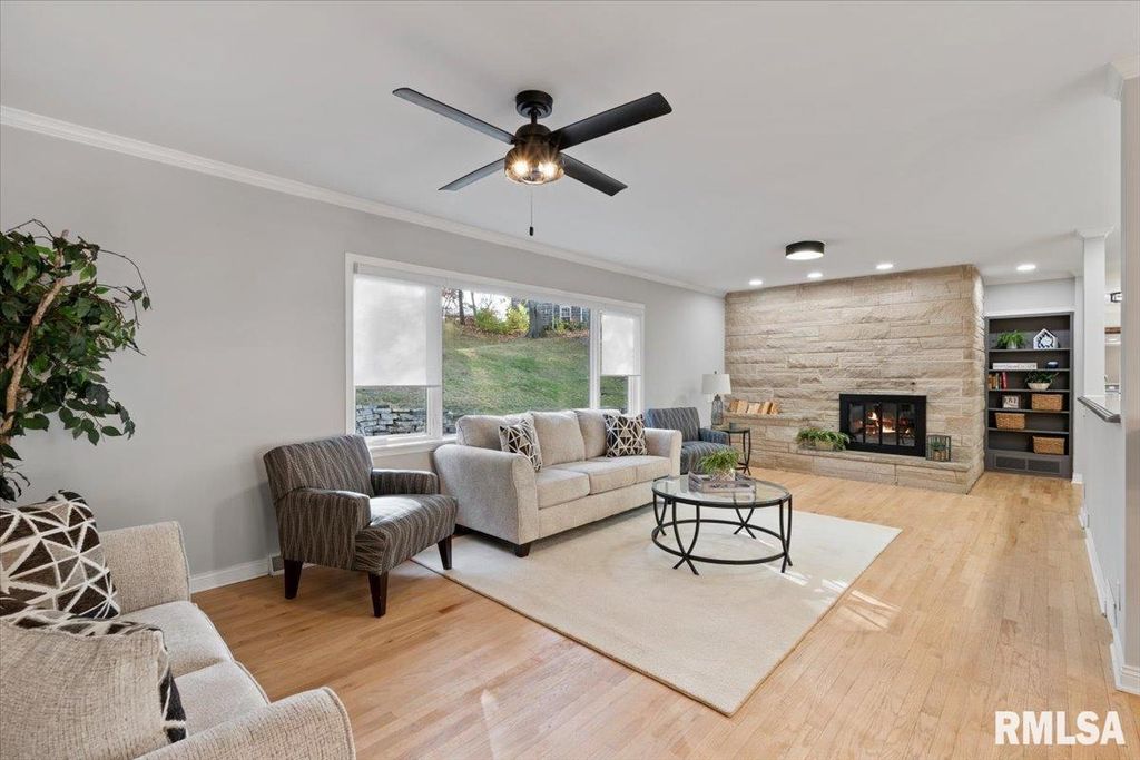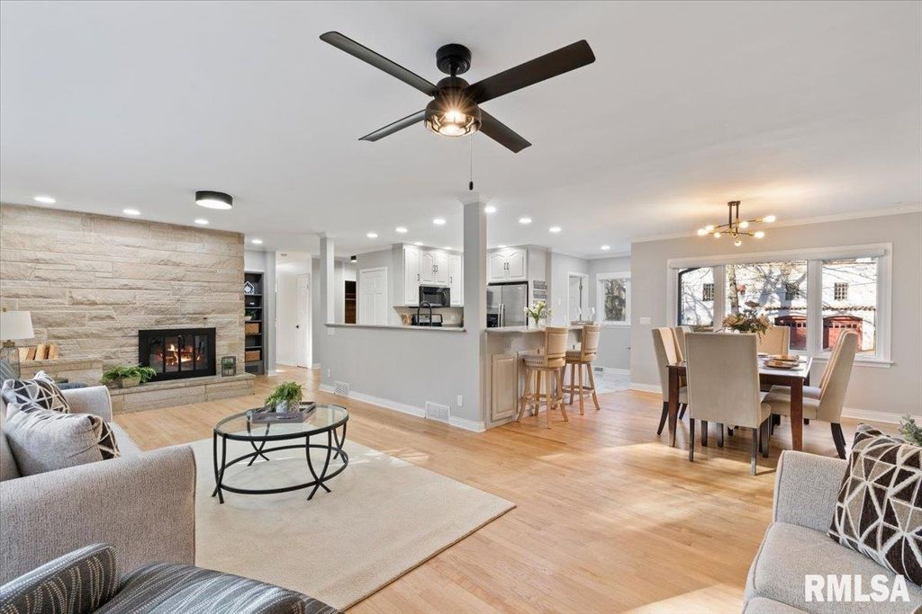 3-bed, 2-bath home in Davenport's historic McClellan Heights offers a beautiful blend of mid-century character & modern comfort. The open-concept layout highlights recessed lighting, large windows, & hardwood floors throughout the main living areas. A striking stone fireplace anchors the living room, while spacious closets, main-floor laundry, & remote-controlled blinds in the living areas & primary bedroom add convenience. Down the hall are 3 comfortable bedrooms & a large full bath. The basement provides a rec room, plenty of storage options, & access to the 2-car garage. The fenced yard features a natural hillside that adds visual interest, enhances privacy, & creates a unique seasonal landscape that sets the property apart. Seller is a REALTOR Licensed in IA & IL