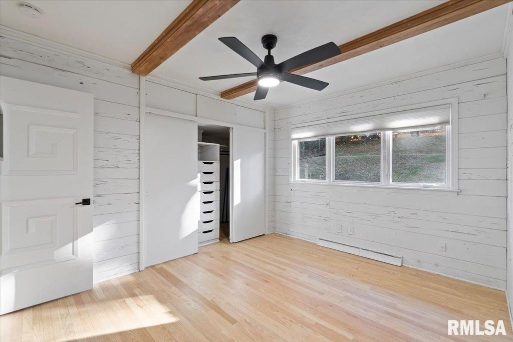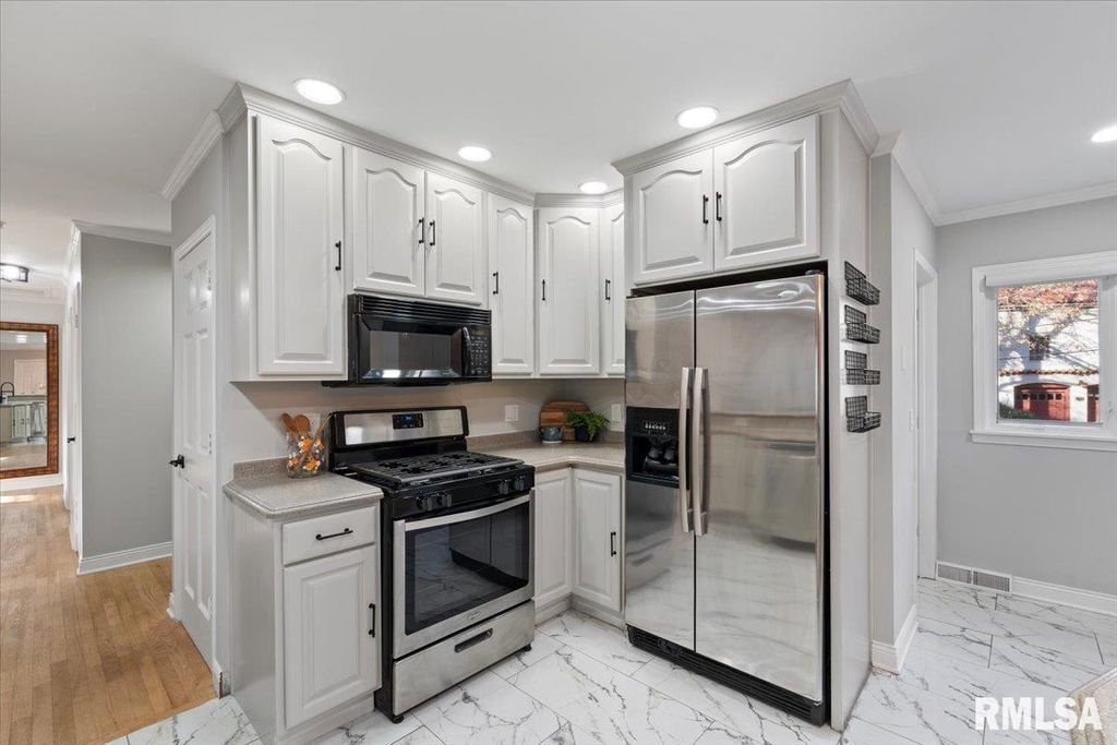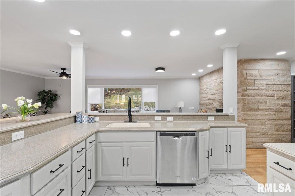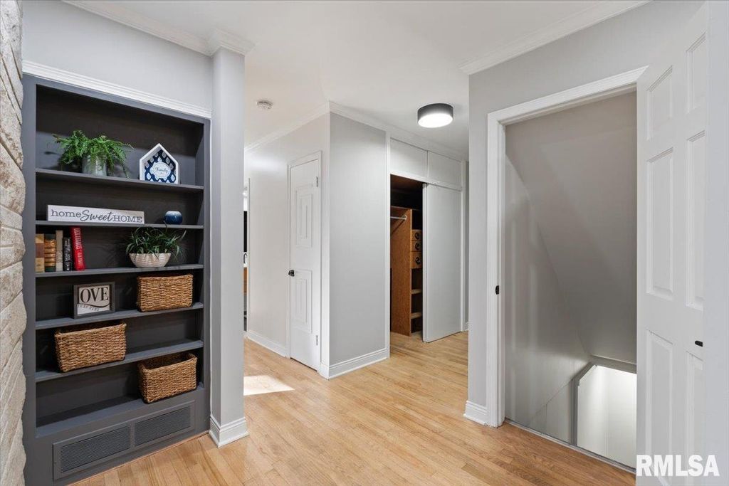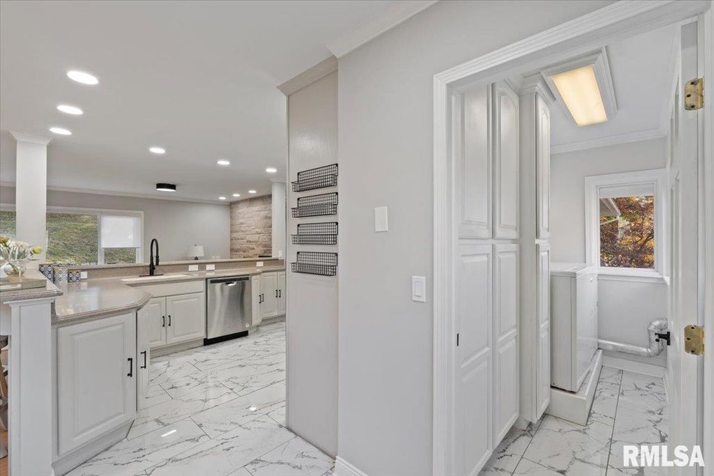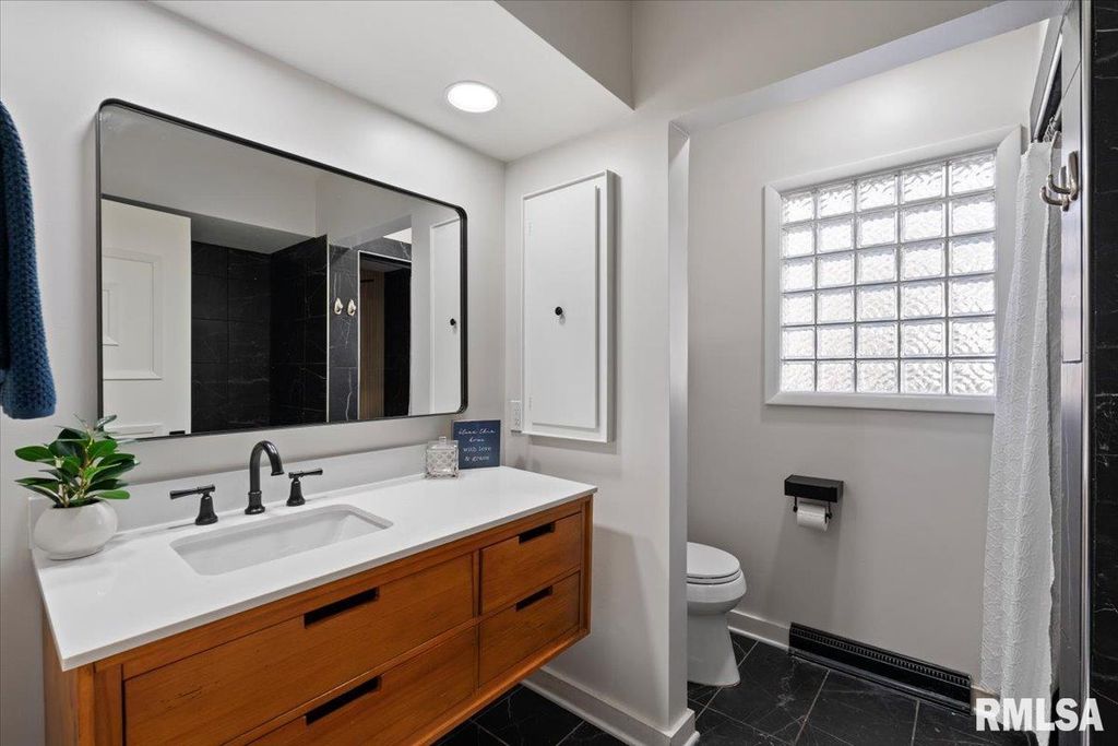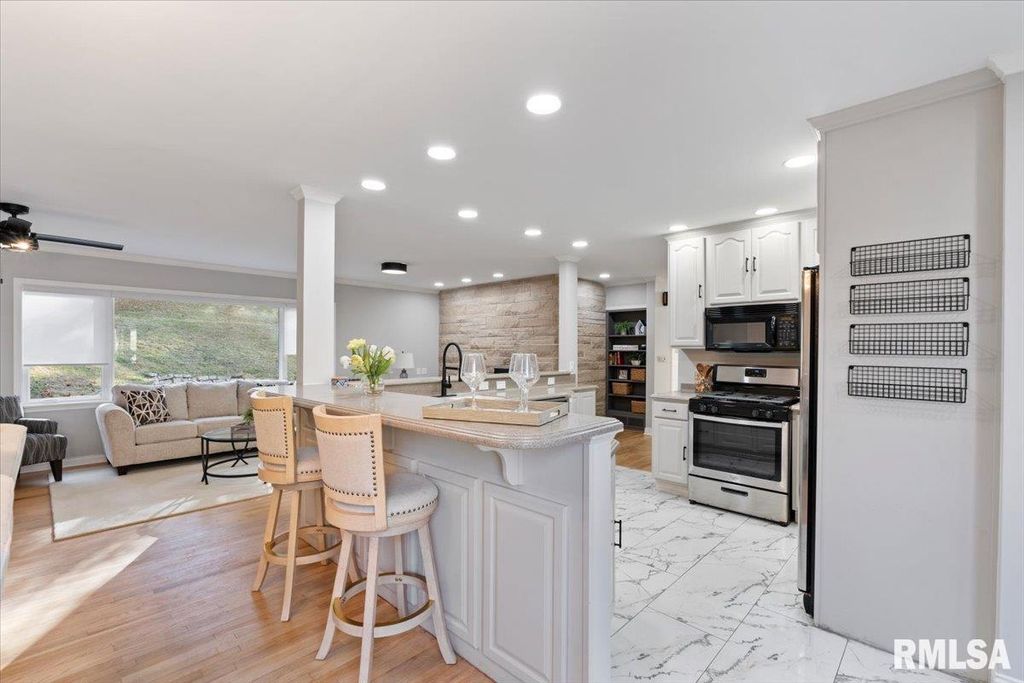 3-bed, 2-bath home in Davenport's historic McClellan Heights offers a beautiful blend of mid-century character & modern comfort. The open-concept layout highlights recessed lighting, large windows, & hardwood floors throughout the main living areas. A striking stone fireplace anchors the living room, while spacious closets, main-floor laundry, & remote-controlled blinds in the living areas & primary bedroom add convenience. Down the hall are 3 comfortable bedrooms & a large full bath. The basement provides a rec room, plenty of storage options, & access to the 2-car garage. The fenced yard features a natural hillside that adds visual interest, enhances privacy, & creates a unique seasonal landscape that sets the property apart. Seller is a REALTOR Licensed in IA & IL