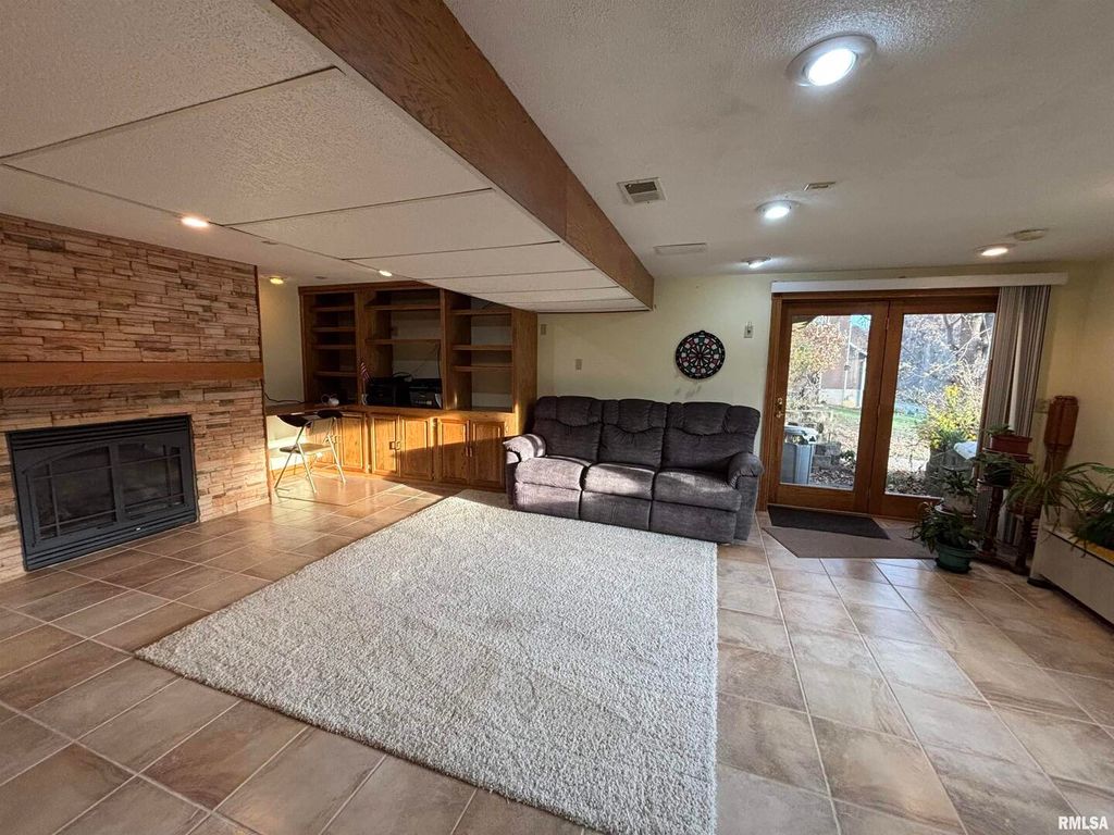 Great country living & nature lovers retreat in desirable Hickory Hills, Blue Grass IA. 3 bedroom, 2 1/2 bath, 2 car garage on 1+ acre lot. Nature & daylight surround you upon entry into the open floor plan. Large multi-level private decks with great scenic views. Daylight penetrates lower level finished with gas fireplace, laundry room with 1/2 bath. Solid wood doors throughout. Less than $65/mo HOA fee covers unlimited very good well water & road maintenance. 20'x12' shed with loft. Water heater new 2025. Furnace/AC new 2020. Roof new 2017. All appliances & riding lawn mower included (as-is). Snow removal provided by HOA is for shared roads only, not individual driveways. Upper level deck boards need replacement.