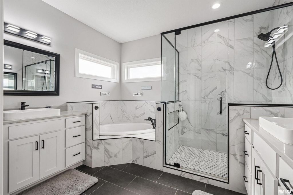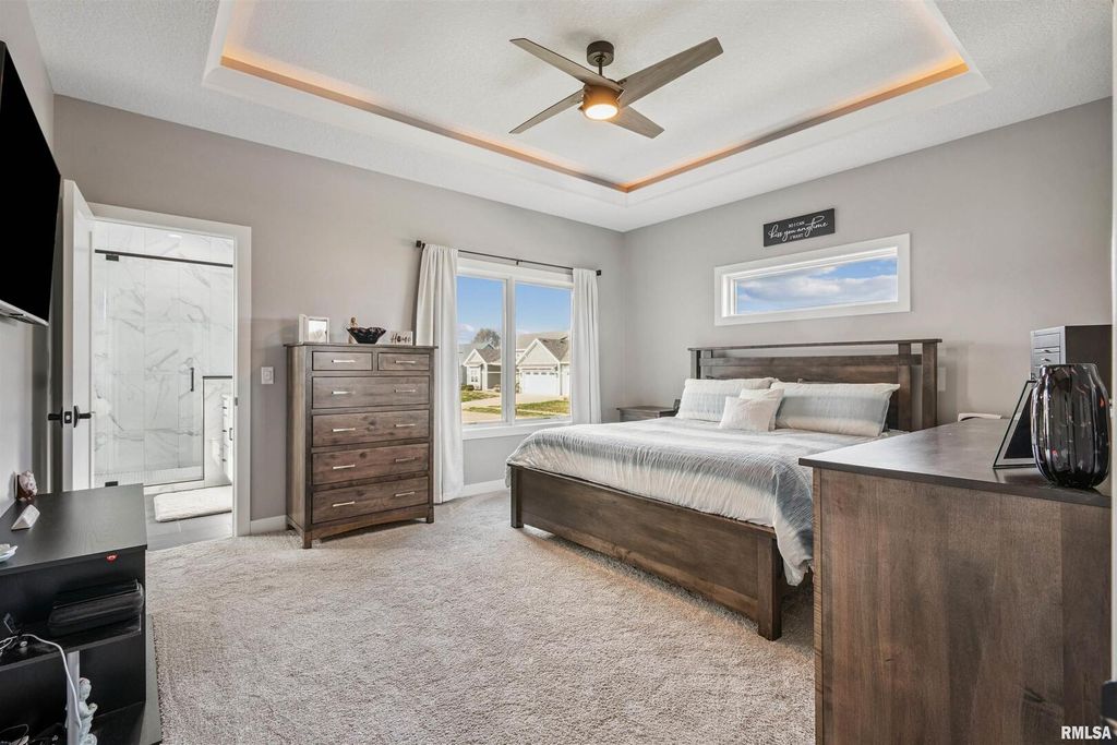 Showings start 11/19. Welcome to this luxury East Davenport ranch full of high-end details. Only 3 years old and truly better than building, this meticulously maintained home features an elevated design, exceptional natural light, and premium finishes. Step inside to an open-concept main level with vaulted ceilings and floor-to-ceiling windows that flood the space with natural light. The kitchen features a large island while also providing room for an informal dining area. The spacious living area and dining space flow seamlessly to the oversized composite deck-partially covered with a ceiling fan and also an open section perfect for soaking up the sun. The main floor includes three bedrooms, highlighted by a luxurious primary en-suite complete with heated floors and upscale finishes. The fully finished walkout basement is an entertainer's dream, featuring a brand-new high-end wet bar, a large rec room, and direct access to the oversized patio with a hot tub that stays! You'll also find a 4th bedroom, finished workout room and abundant storage! Sitting on a new fully fenced, quarter-acre corner lot, the outdoor space is private, spacious, and designed for enjoyment. The home also includes an oversized 3-car garage plus an attached rear storage shed with its own garage door for extra storage! Immaculate, modern and move-in ready, this home offers unmatched quality and luxury. You don't want to miss it!