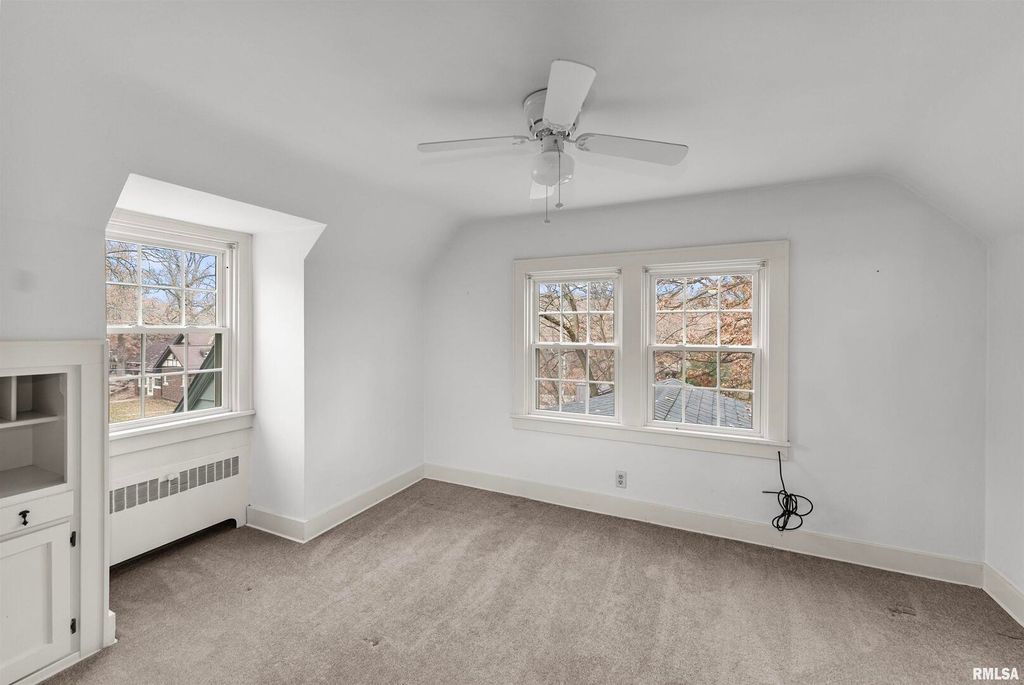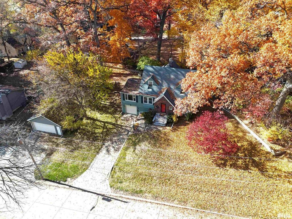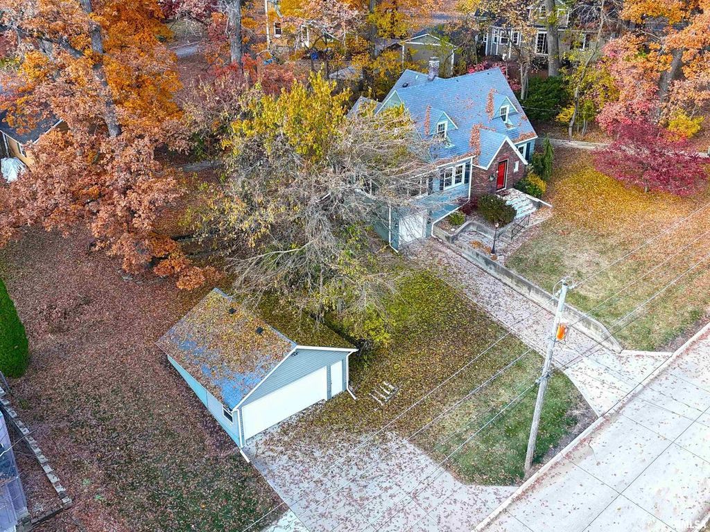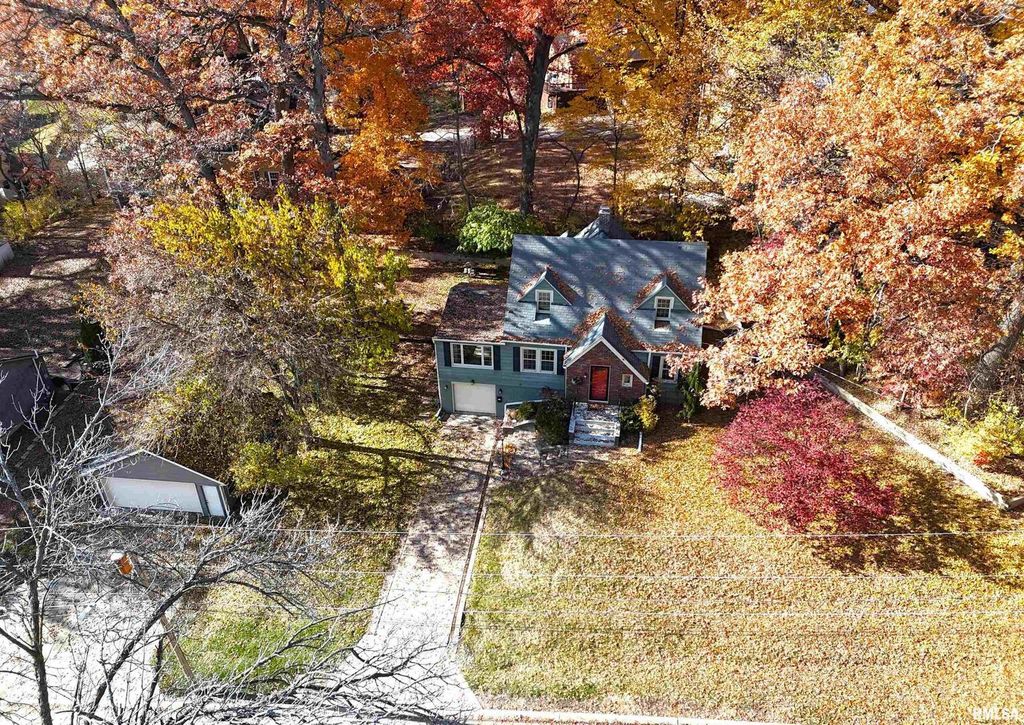 This is your spot! Charming Cape Cod atop a lovely oak tree covered yard consisting of 3 lots in a one of a kind classic neighborhood. Great home for company, whether on the huge exposed aggregate patio in warm weather, or inside, enjoying the fireplace in the cozy family room, with all knotty pine surrounding you and 4 picture windows to take in the serenity of the outdoors. Updated windows, boiler/steam heat and some painting. Hardwood under carpets too. For your "stuff",AN EXTRA 2 CAR GARAGE, 22 x22!. Home has been in the same family for 81 years! Hard to part with...Seller is a Realtor licensed in Illinois and Iowa. Electric heat on wall of family room, not usable, never was.