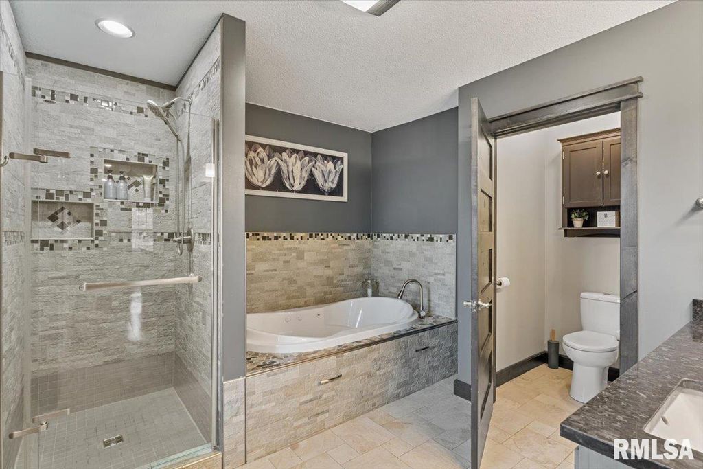 5-bed, 3.5-bath home in Silvis offering exceptional space across 4 finished levels. This impressive property provides more than 1k sq ft on each level, + an addl 658 sqft in the attic. The main floor includes a living room, an office, an informal dining area, a beautiful kitchen with knotty alder cabinetry & granite countertops, a mudroom connecting to the heated 2-car garage, & a convenient 1/2 bath. The 2nd floor features 4 bedrooms & 2full baths, including a lg primary suite with a WIC, fireplace, private patio area, & a luxurious en suite bath. The attic serves as a huge non-conforming 5th bdrm or family room. The basement adds a rec room, game room, & a full bath. The fenced yard includes a pool & hot tub. Highlights include radiant flooring on 1st & 2nd levels, solid alder doors, 2 200-amp panels, whole-house surround system, smart switches, smart thermostats. There's an option to purchase the sm. house on adjacent property, 2 bd/1 ba, for added possibilities.