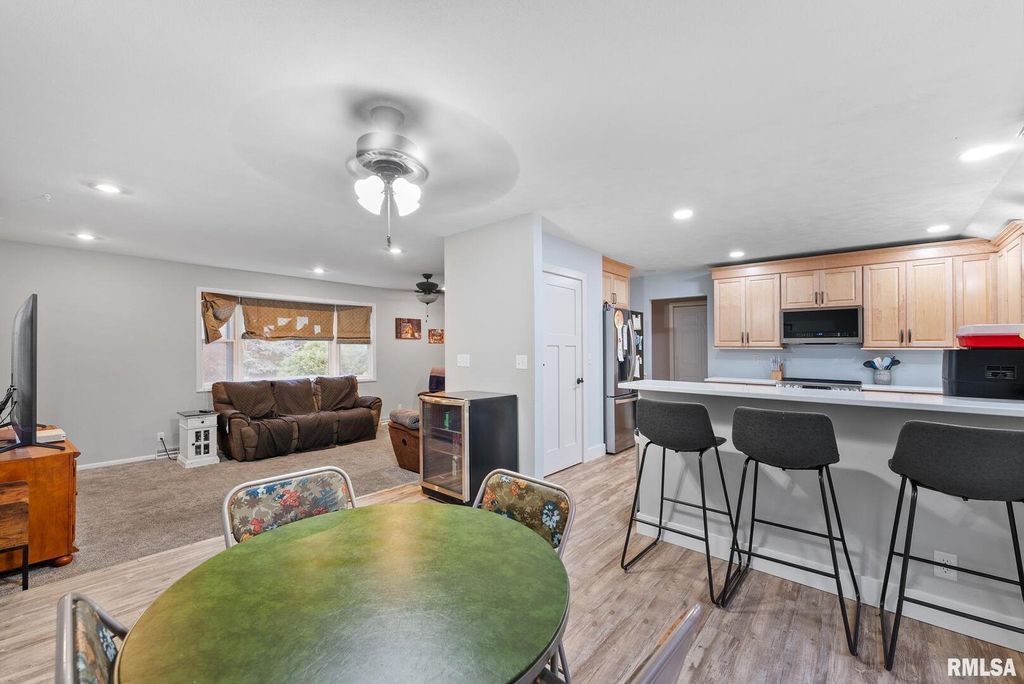 Check out this spacious 4 bedroom home on a 1+ acre lot, in a desirable subdivision just at the North edge of town. The kitchen has recently been remodeled, and features Maple cabinets, crown molding, quartz countertops, stainless appliances and a large pantry. The dining area has sliders to the large and private back yard, which includes a brick patio and a storage shed. Main floor laundry is just off the kitchen. A short flight of stairs leads to four bedrooms, a full bath, and the primary suite also has a full bath. The lower level has a big family room with a large brick fireplace. There is also an unfinished basement that houses utilities and storage. Needs a bit of TLC and priced accordingly, however the seller would consider an allowance.