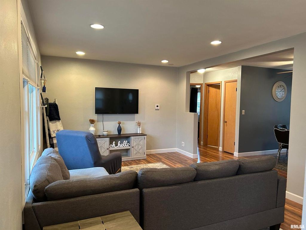 This beautiful ranch home with attached garage will pleasantly surprise you... Two nice size bedrooms on the main level with ample room for a third in the basement. Two full bathrooms, one on the main level with tub and tiled shower, & a brand-new-never-been-used full bath with tiled shower in the basement. Stunning wood flooring throughout much of the main and basement levels. Functional kitchen with tile flooring, nice appliances, wood cabinetry, & lots of counter and storage space. Formal & informal dining areas. Awesome rec room in the basement featuring a custom bar, projection TV, & wall mounted smart board that stay with the home. Large laundry room with washer & dryer. Large mechanical/storage room with enough space to potentially add an egress window and third bedroom. Basement has been waterproofed. Maintenance free vinyl windows with shades & curtains. Newer steel entry & storm doors. Per seller, 2025 brand-new-never-been-used full bath in the basement, new drain in the driveway, 2017 new roof. HVAC approximately 15 years old, serviced annually. Located on the east side of Silvis, about four blocks from George O'Barr grade school. Situated on a large level lot with mature shade trees, this home has a huge back yard with potential to add an additional garage. Great central location with easy access to schools, hospital, post office, banking, restaurants, & shopping. Neat as a pin, clean & move in ready, come celebrate the holidays in Silvis!