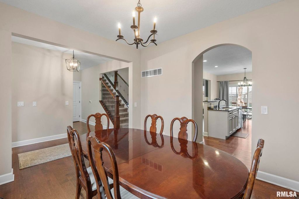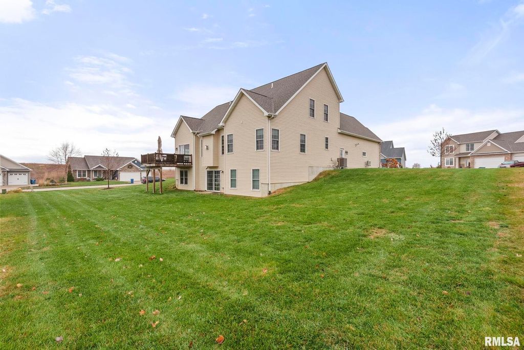 Welcome to Pebble Creek North. This beautiful 1.5 Story that sits on a .49 acre lot is waiting for it's new owners. The two story great room is open to the expanded eat-in kitchen. Main bedroom has new carpet, huge ensuite with walk-in closet. Main floor laundry. Upstairs you will find three large bedrooms. with one extended over the garage. Finished walk-out basement homes the 5th bedroom with egress window, exercise room, huge storage room and oversized rec room. 3 car garage. All nestled on the well manicured rounded corner lot. Smoke and CO2 detectors are hardwired, roof 2020, Hybrid water heater 2025, new flooring upstairs, in main bedroom and basement.