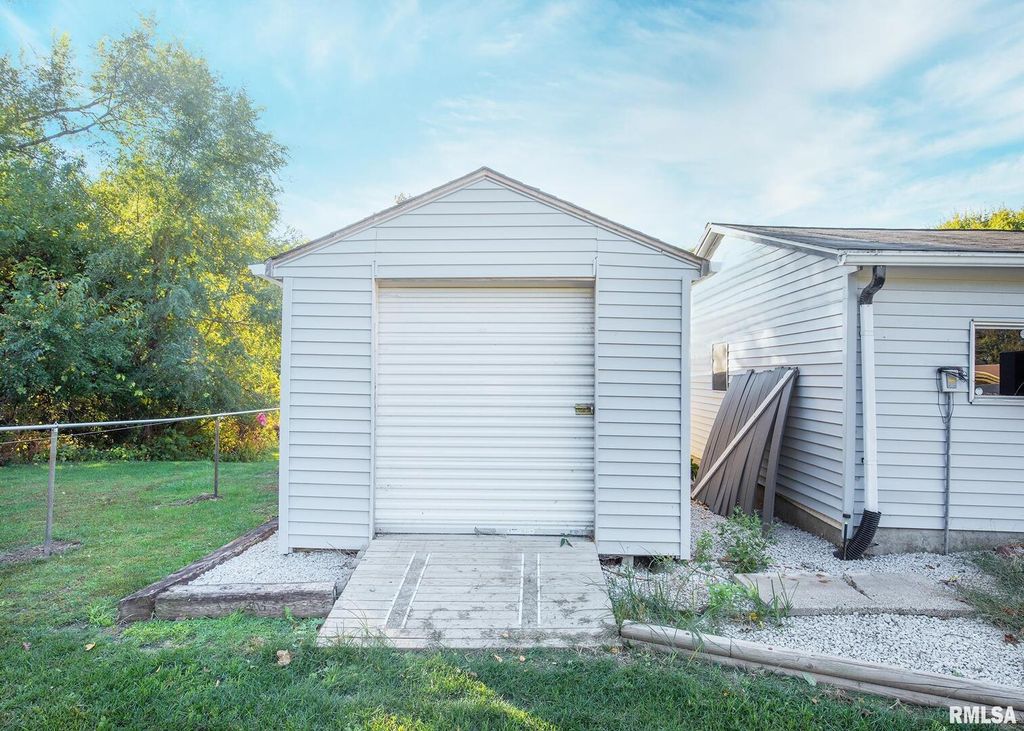 Located on the bike path across from the golf course, this home features a heated and cooled office within the double car garage, as well as 2 additional buildings. This 3 bedroom home has an updated bathroom and kitchen with newer appliances. Basement bedroom does not have an egress window, but has steps directly to the outside. This home is an estate and is being sold as-is.