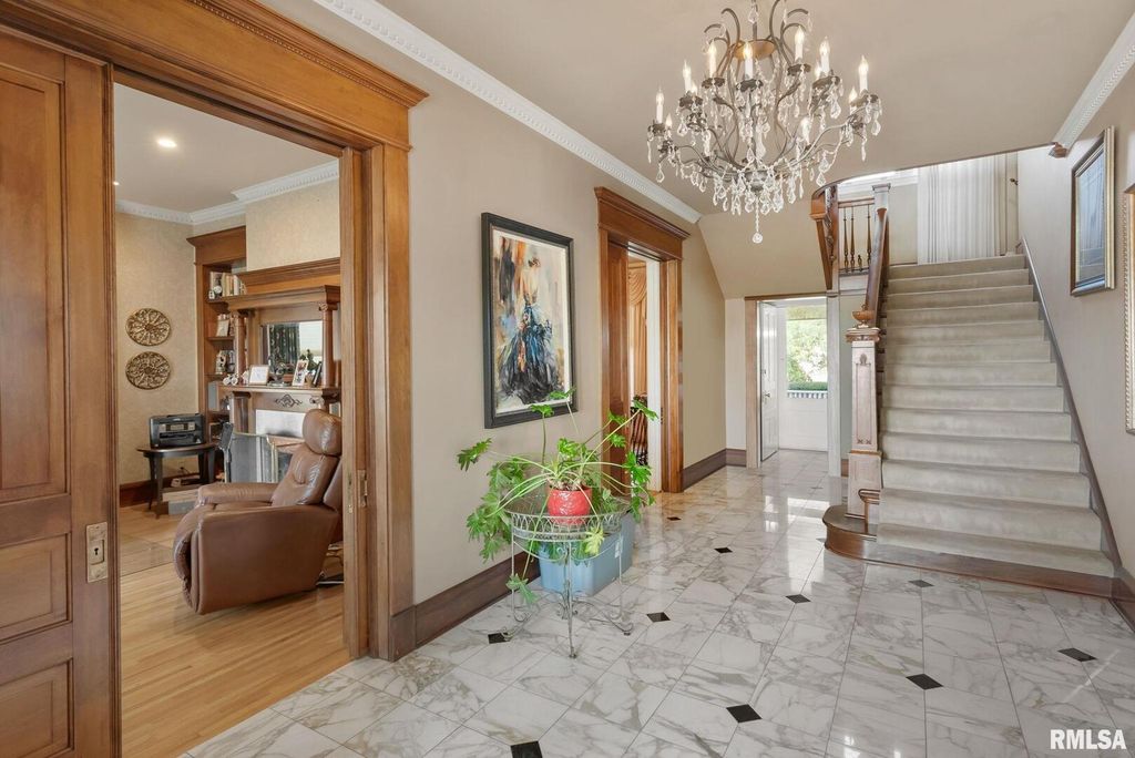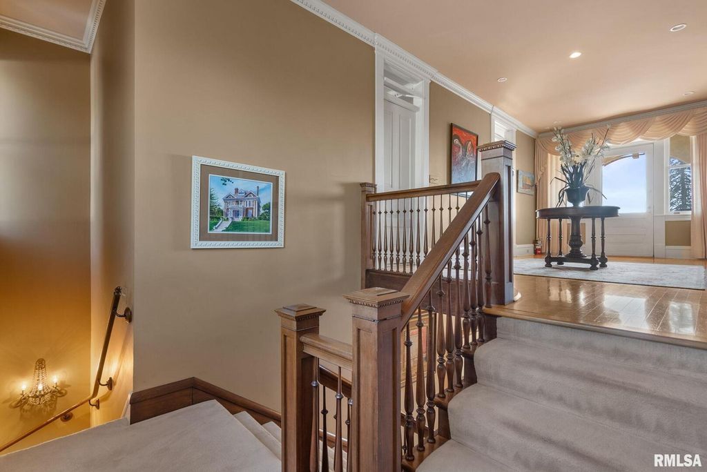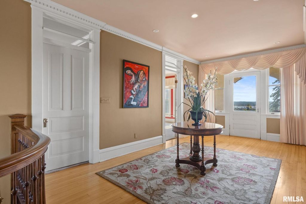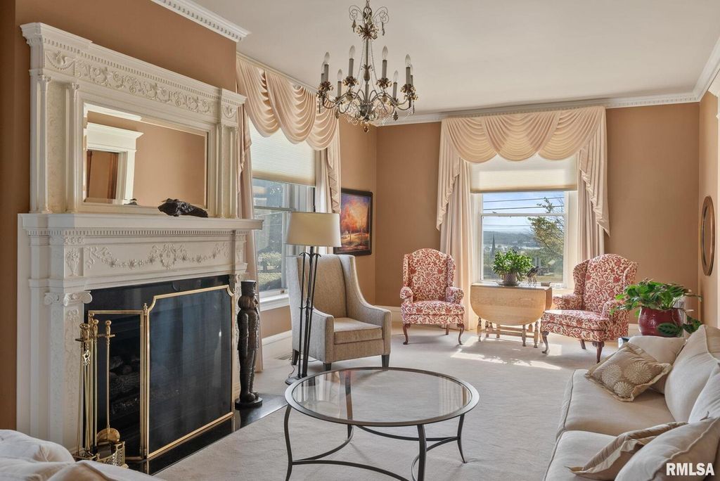 Coming Soon! Perched above the Mississippi River in Davenport, Iowa, this exceptional three-story mansion-listed on the National Register of Historic Places since 1983-seamlessly blends turn-of-the-century craftsmanship with modern luxury. Built in 1900 and constructed with brick and carved limestone, the home offers breathtaking river views and timeless architectural presence. Inside, a marble entryway, pocket doors, and transom windows introduce the home's rich character. Thoughtful renovations elevate every space, including an updated chef's kitchen featuring cherry cabinetry, marble flooring, granite countertops, a Viking stove, and Sub-Zero refrigerator. The formal dining room and library/den provide elegant spaces for entertaining or quiet retreat, enhanced by one of the home's four fireplaces. The 2nd floor offers three well-appointed bedrooms, while the 3rd floor impresses as a spacious family/media room complete with built-in shelving, LED track lighting, a skylight, and a full bathroom-perfect as a private suite, creative studio, or entertainment level. A rare feature, the heated three-car Carriage House includes an upper-level bonus/party room with an open-studio layout, full bathroom, and generous storage options. Outdoors, the beautifully landscaped grounds are designed for relaxation and gatherings, showcasing a pergola, patio, and classic fountain. This is an amazing opportunity to own an iconic Davenport residence with undeniable presence and charm!