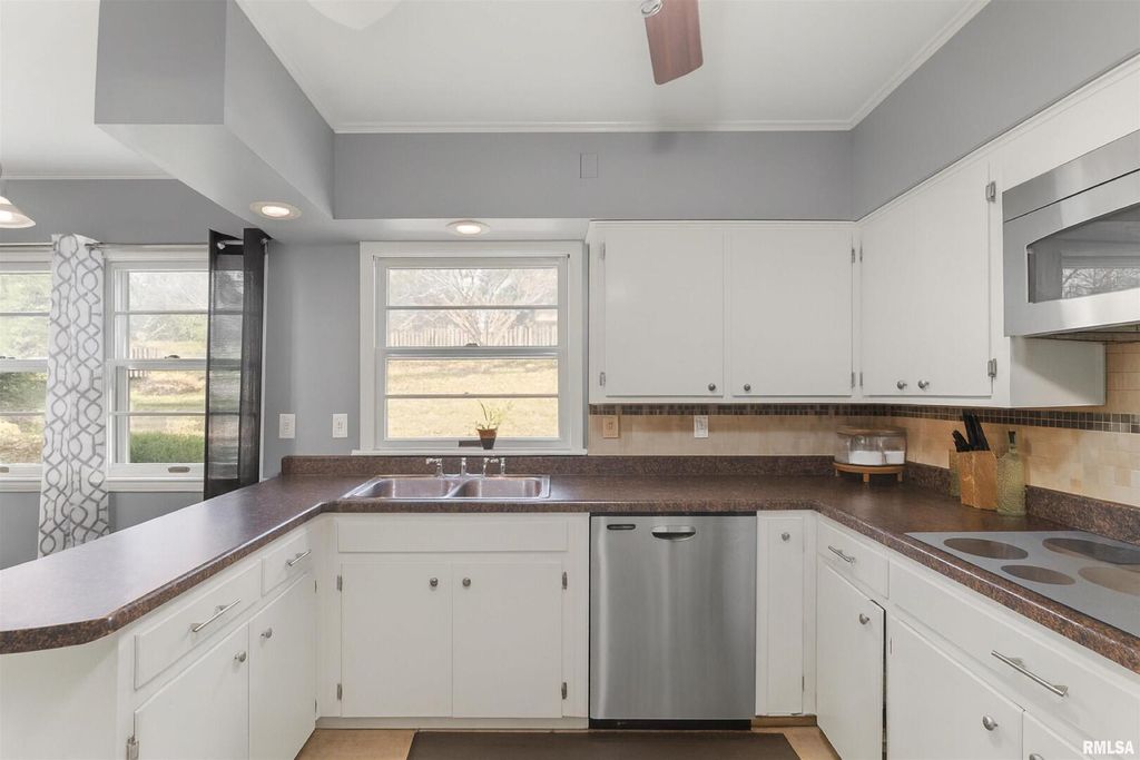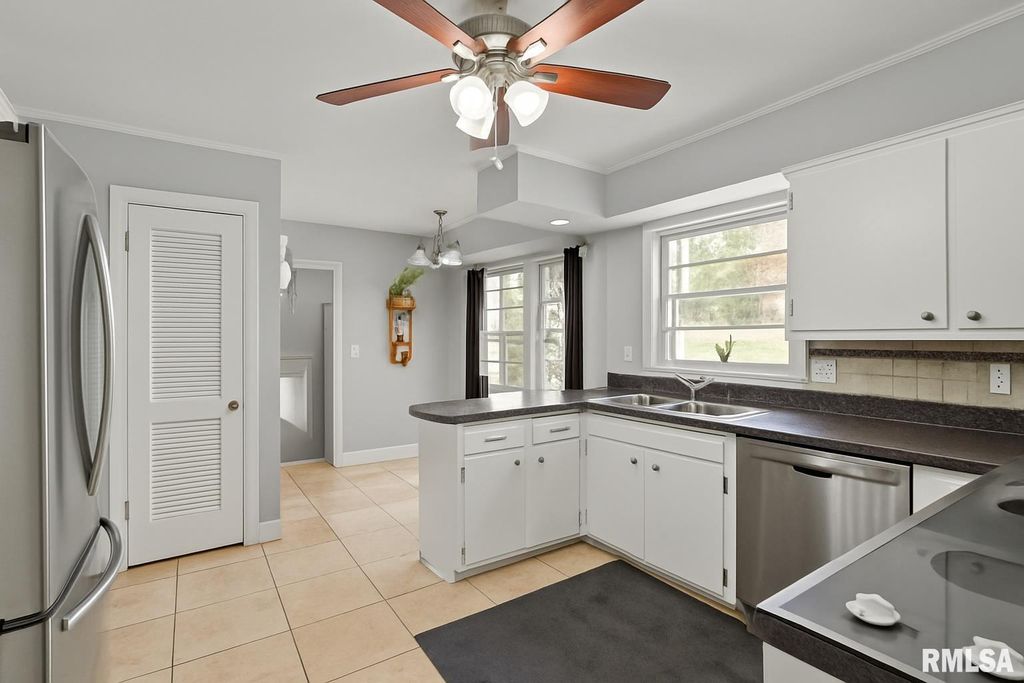 Spacious 4-bed/2-bath home in Rock Island's Carl Tiedemanns subdivision built in 1957. Featuring an attached 2-car garage, generous terraced yard with catch-all drainage for backyard water management, and a fenced lot with shed and patio space. Interior freshly painted throughout including the kitchen, showcasing a bright galley layout adjacent to the living room and formal dining space. Upper level offers three spacious bedrooms; lower level provides a fourth bedroom and family/rec room. Central air, forced-air gas heat, public sewer/water. Convenient to Eugene Field Elementary, Longview Park-Gardens, a golf course and local cafe scene. Easy access to I-74 for regional commute. Ready for your finishing touches.