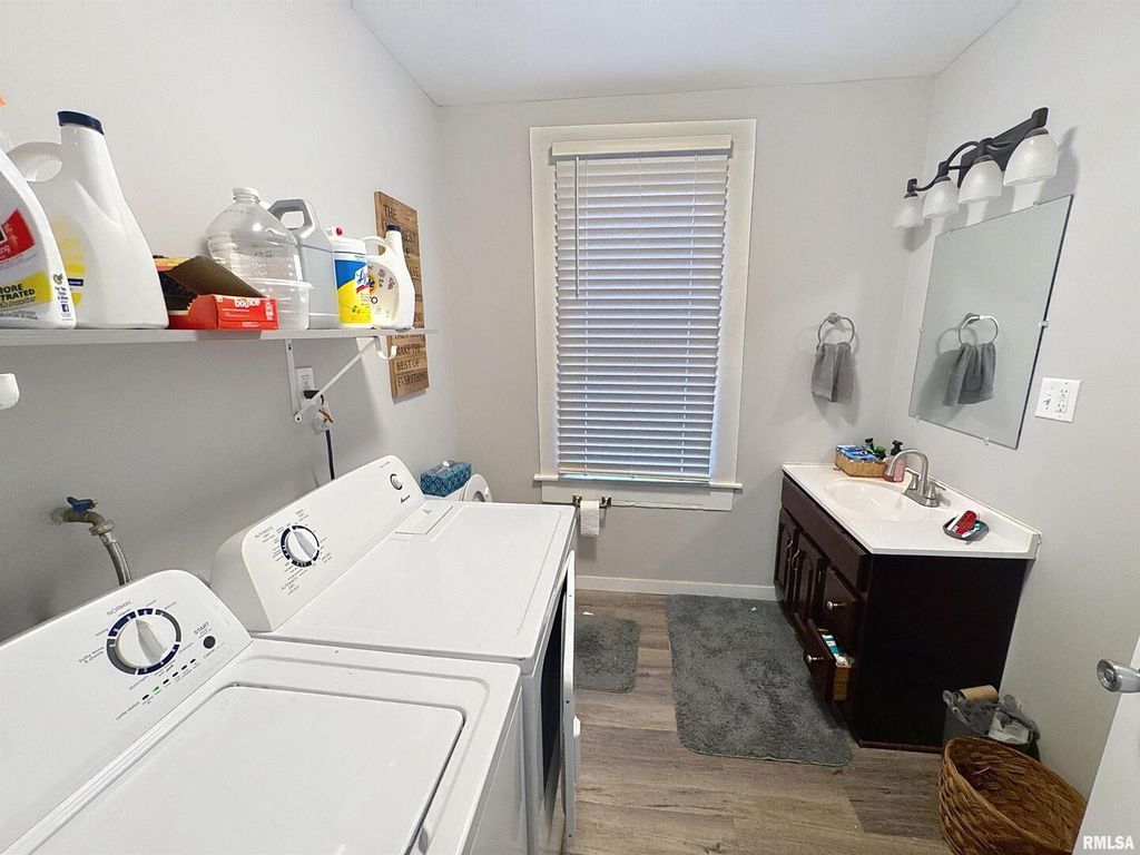 This inviting 1.5-story home offers a fantastic blend of space, convenience, and updates-perfectly situated near parks, schools, and everything Moline has to offer. Wander inside to a comfortable living room, a large eat-in kitchen, a full bathroom with laundry, a main-floor bedroom, and a mudroom for easy organization. Upstairs, you'll find two additional bedrooms, a half bath, and handy attic storage. The basement provides even more storage options, giving you plenty of room to spread out. Outside, enjoy a fenced backyard with direct access to the 2-car garage via the alley. Recent updates include: garage roof (2025), large tree removed (2025), blinds added to all windows, new furnace (2025), and new water heater (2023. If you're looking for a well-kept home in a convenient Moline location with great updates already done, this one is a must-see!