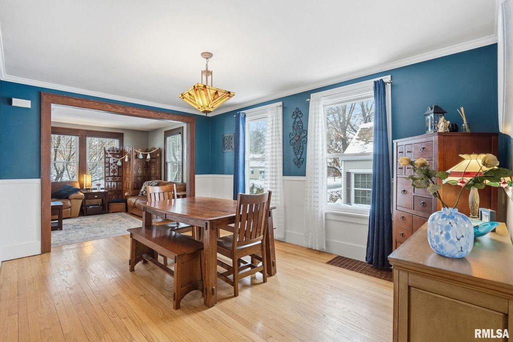 This beautifully maintained 3-bedroom, 2-bath home with over 2,300 sq feet of living space offers a spacious floor plan, a finished basement with bar, & an oversized, heated 2.5-car garage with attic storage. Enjoy outdoor living in your fenced-in yard with a stamped concrete patio, updated landscaping featuring a fire pit, a covered patio, & underground tile drainage. Inside, you'll find refinished original hardwood floors, gorgeous hardwood doors & trim, a renovated mudroom, & a remodeled second-floor bedroom with new flooring and paint. Major updates include new siding, oversized 6" gutters with guards, a new roof, and a high-efficiency furnace, and an air conditioning system. Don't miss your chance to own this charming house in a prime Moline location. Schedule your showing today!