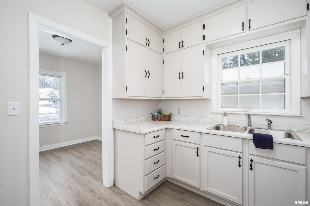 Looking for a cute, 2 bedroom, 1 bath, 1 car garage home? This is it! With fresh paint, new vinyl flooring throughout, new appliances and updated light fixtures, you will leave feeling like this home is the perfect fit! Walk into the home and you are greeted with a large living space perfect for entertaining family and friends. The functional layout offers two bedrooms and a full bath in the east wing, while the formal dining and adorable kitchen can be found in the west wing of the home. The large full basement is clean and freshly painted. You will love the large corner lot and convenient location, especially in the summer during BIX race season! This home can check all of the boxes! Furnace [1992], Water Heater [2015], AC [2009], Roof [2009]. Listing Agent Related to Seller.