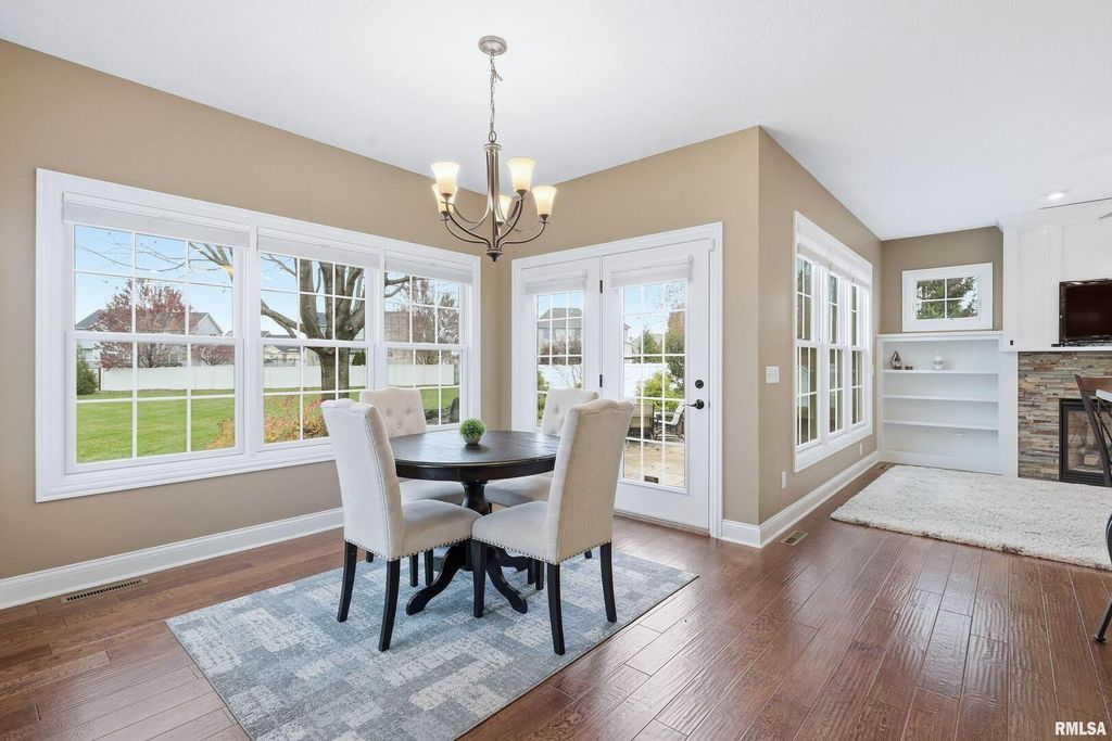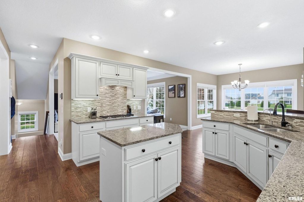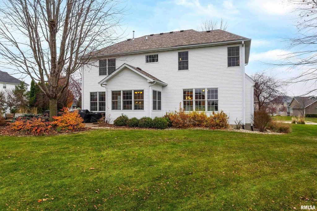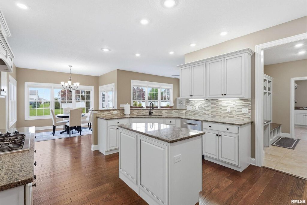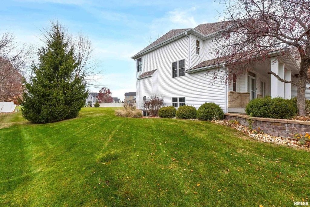 Gorgeous well-maintained 2-story home offers over 4,000 finished sq. ft. on a beautifully landscaped large lot. Enjoy sweeping views of the backyard and stone patio from the expansive rear windows. The open kitchen features granite countertops, stainless steel appliances, abundant cabinetry with pull-out drawers and shelves, and a spacious pantry. Adjacent to the kitchen and informal dining area is a cozy hearth room with a gas fireplace. Entry from the garage leads to a private laundry room and a large mudroom with custom built-ins. Each upstairs bedroom has access to its own bathroom: the second bedroom enjoys a private full bath, while the third and fourth bedrooms share a Jack-and-Jill full bath. The fully finished basement offers 9 foot ceilings, a large recreation room, a wet bar with kitchenette, a fifth bedroom, a full bath, and ample storage. Irrigation system, radon mitigation system, generator and 3 car garage. Pleasant Valley Community School District.