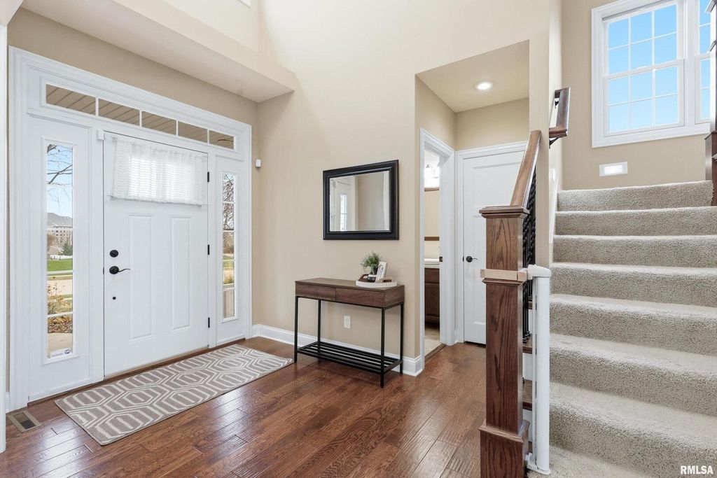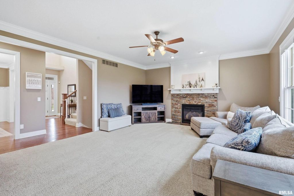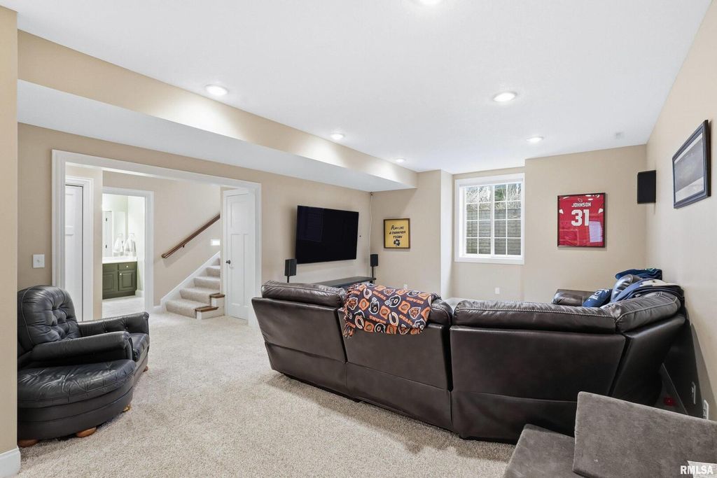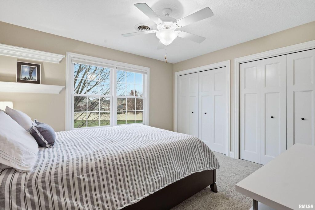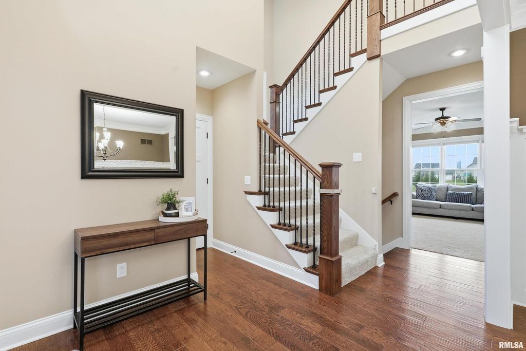 Gorgeous well-maintained 2-story home offers over 4,000 finished sq. ft. on a beautifully landscaped large lot. Enjoy sweeping views of the backyard and stone patio from the expansive rear windows. The open kitchen features granite countertops, stainless steel appliances, abundant cabinetry with pull-out drawers and shelves, and a spacious pantry. Adjacent to the kitchen and informal dining area is a cozy hearth room with a gas fireplace. Entry from the garage leads to a private laundry room and a large mudroom with custom built-ins. Each upstairs bedroom has access to its own bathroom: the second bedroom enjoys a private full bath, while the third and fourth bedrooms share a Jack-and-Jill full bath. The fully finished basement offers 9 foot ceilings, a large recreation room, a wet bar with kitchenette, a fifth bedroom, a full bath, and ample storage. Irrigation system, radon mitigation system, generator and 3 car garage. Pleasant Valley Community School District.