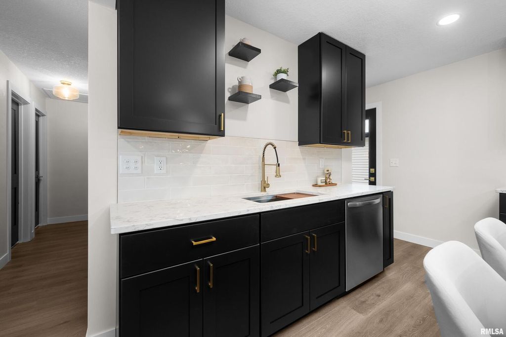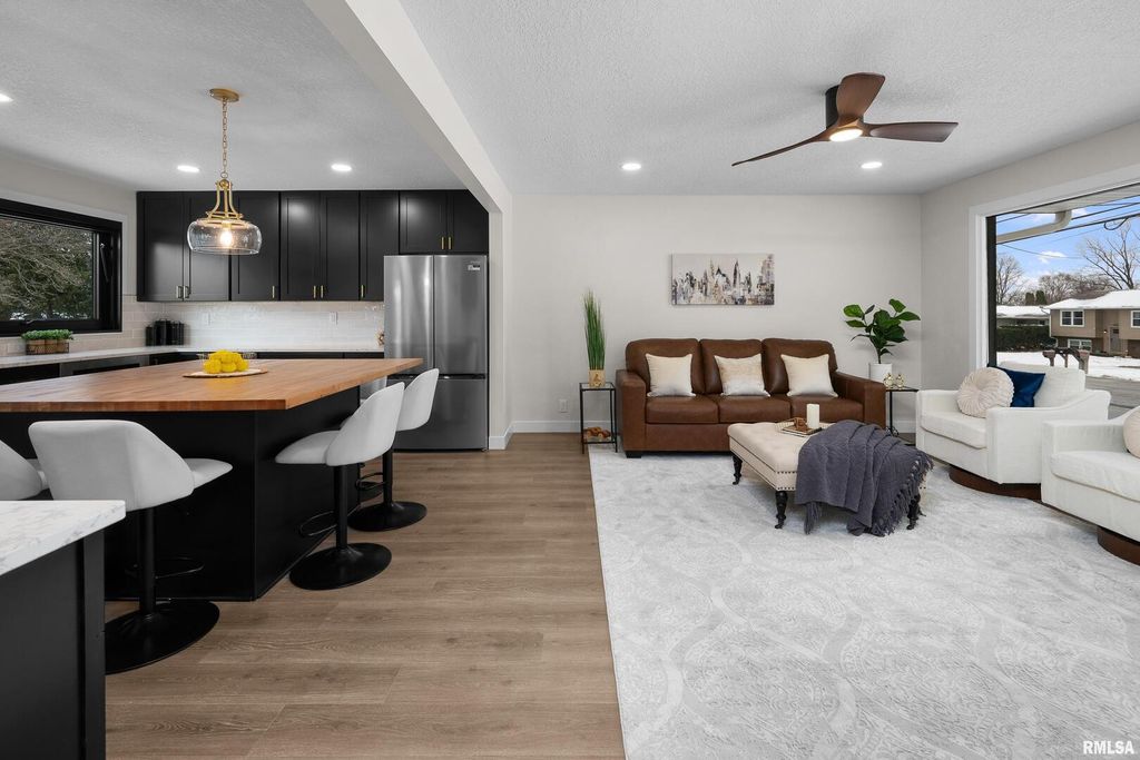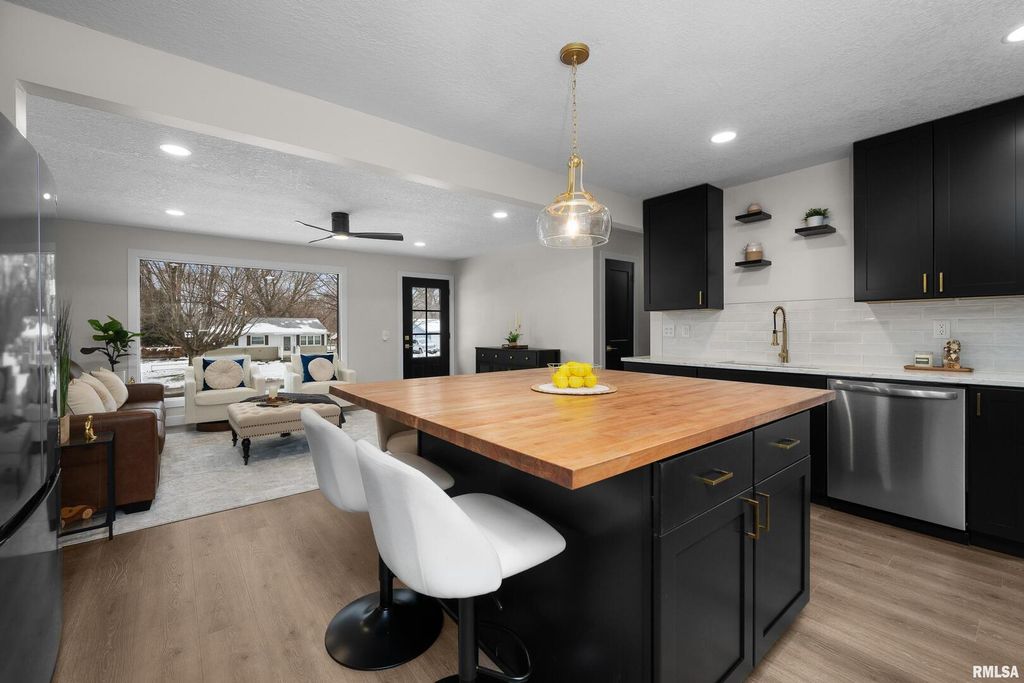 Another exceptional restoration by Southern Cross Properties! This beautifully updated 4-bedroom, 1.5-bath ranch in Le Claire features a detached 2-car garage and an inviting party deck with a pass-through window into the stunning remodeled kitchen. The kitchen includes solid surface countertops, a large butcher block island, and brand-new appliances. The finished basement offers a spacious rec room, fourth bedroom, and a laundry room complete with sink and stool. Enjoy a nicely landscaped, semi-private backyard with mature trees and bushes. Conveniently located just nine blocks from historic downtown Le Claire. Updates include new vinyl siding, new furnace and A/C, a roof approximately five years old, and a water heater installed in 2013. (Listing agent is related to seller.)