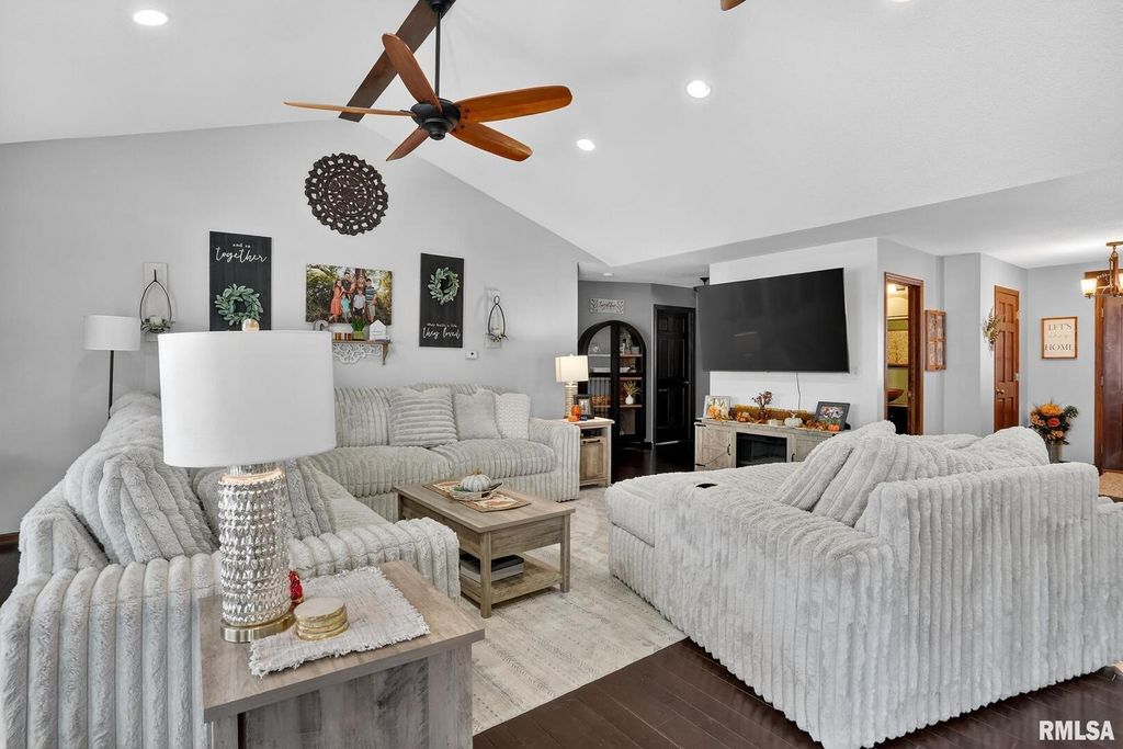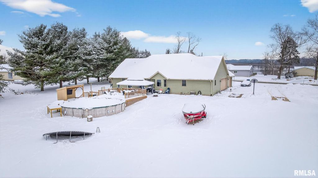 Welcome to this spacious and thoughtfully designed 6 bedroom, 3.5 bath residence situated on just under an acre in Thomson, IL. Featuring an impressive open-concept layout, this home spacious, functional, and versatile. The main level offers four bedrooms, including a primary suite complete with a private bath and walk-in closet. The large kitchen is equipped with ample cabinetry, a pantry, breakfast bar seating, and an adjacent dining area, with a formal dining room nearby for additional seating options. A convenient main-level laundry room adds to the home's practical layout. Vaulted ceilings, beautiful hardwood floors, and generous natural light enhance the main living spaces, contributing to the home's inviting atmosphere. The finished basement expands the footprint significantly with two additional bedrooms, a full bath, and abundant room for recreation, hobbies, or extended living. Outdoors, this property is set up for memorable gatherings with a large deck, an above-ground pool with surrounding entertainment space, and an outdoor bar area. An oversized 3-car garage provides exceptional storage and parking. Additional features include a jetted tub, multiple living areas, and a secluded setting with room to enjoy the outdoors. A rare offering with substantial square footage and an adaptable floor plan-this home provides the space and amenities to accommodate a wide range of needs.