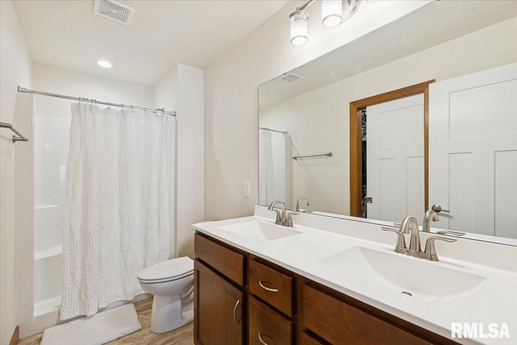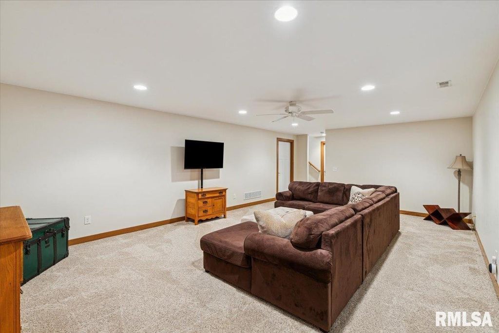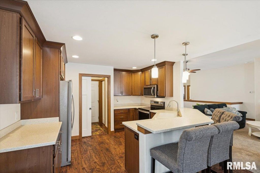 This immaculate, one-owner, zero-lot-line, zero-entry is located on the south side of Eldridge, close to schools, and has been very well maintained. The home offers over 2400 sq ft of living space, three bedrooms, three bathrooms, and a zero-entry two-car attached garage. The open main level features a gorgeous kitchen with beautiful cabinets, solid-surface countertops, a breakfast bar, and an informal dining area. You can also enjoy evenings on the covered deck. The finished lower level significantly expands the living space, offering a huge great room perfect for entertaining or relaxing. It also includes a large bedroom, a separate bathroom, and a generous storage area.
