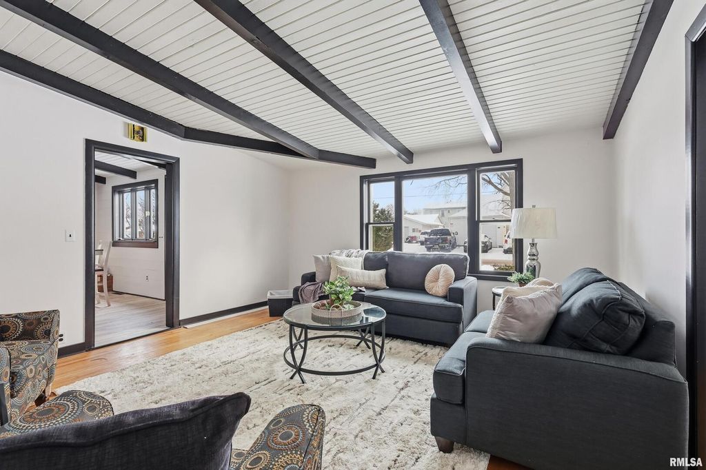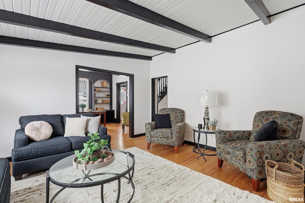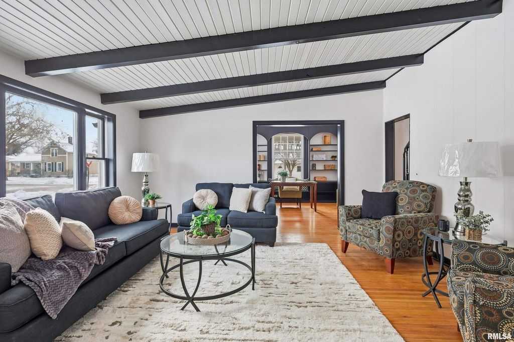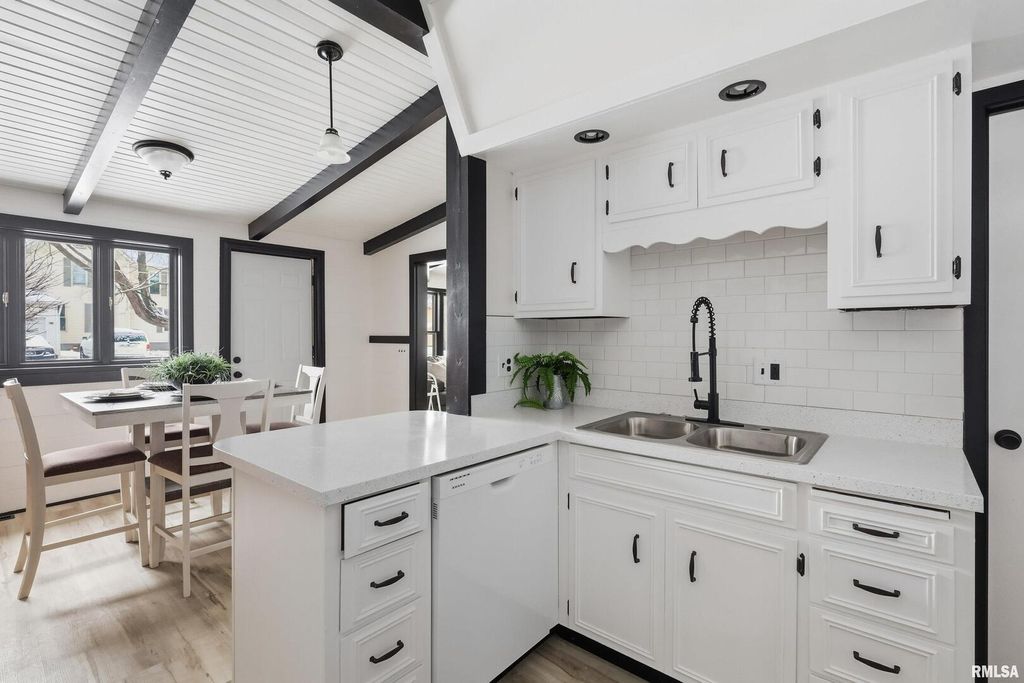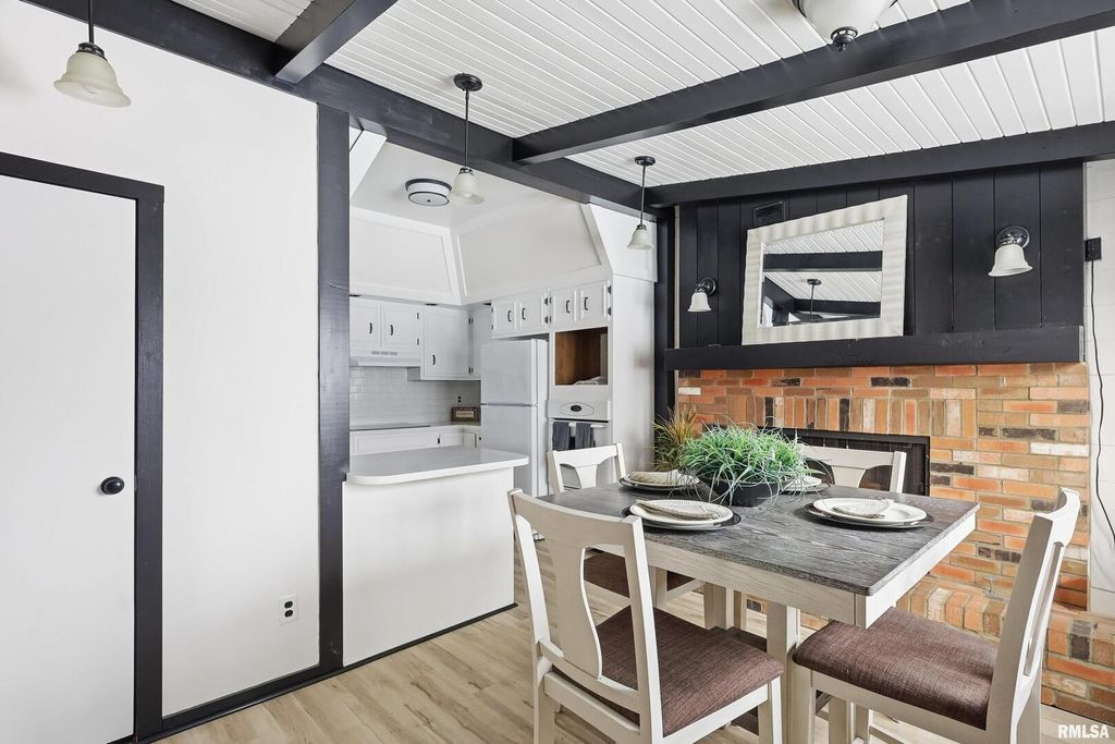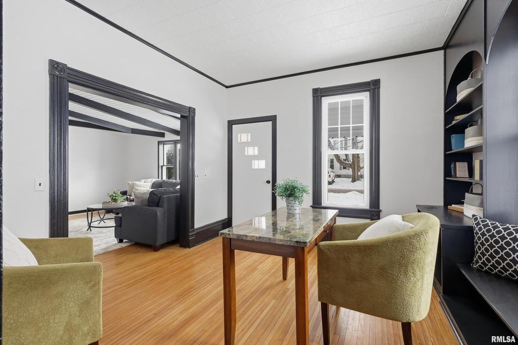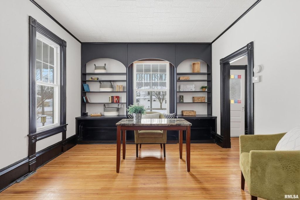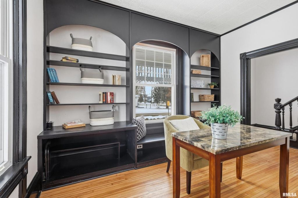 Charming \3-bedroom, 1.5-bathroom home in Geneseo, featuring a delightful Tudor-influenced style on a desirable corner lot. Recently renovated & move-in ready, this home has fresh paint inside & out, new carpet, new LVP flooring, a new kitchen backsplash, updated kitchen fixtures, & remodeled bathrooms. The main floor offers a bright living room & an informal dining room w/ a wood-burning fireplace & character-rich slanted ceilings, alongside a kitchen, bedroom, half-bath, & a great office w/ built-in shelves. Upstairs, 2 more bedrooms share a full bath, w/ 1 bedroom featuring a versatile flex space ideal for a walk-in closet or sitting room, plus ample storage available in the attic. Large windows throughout fill every room w/ natural light. The basement provides laundry facilities, an extra shower/sink, & plenty of space for future finishing, while the exterior includes a fenced backyard, & an attached 2-car garage. Seller is a REALTOR Licensed in IA, IL & FL