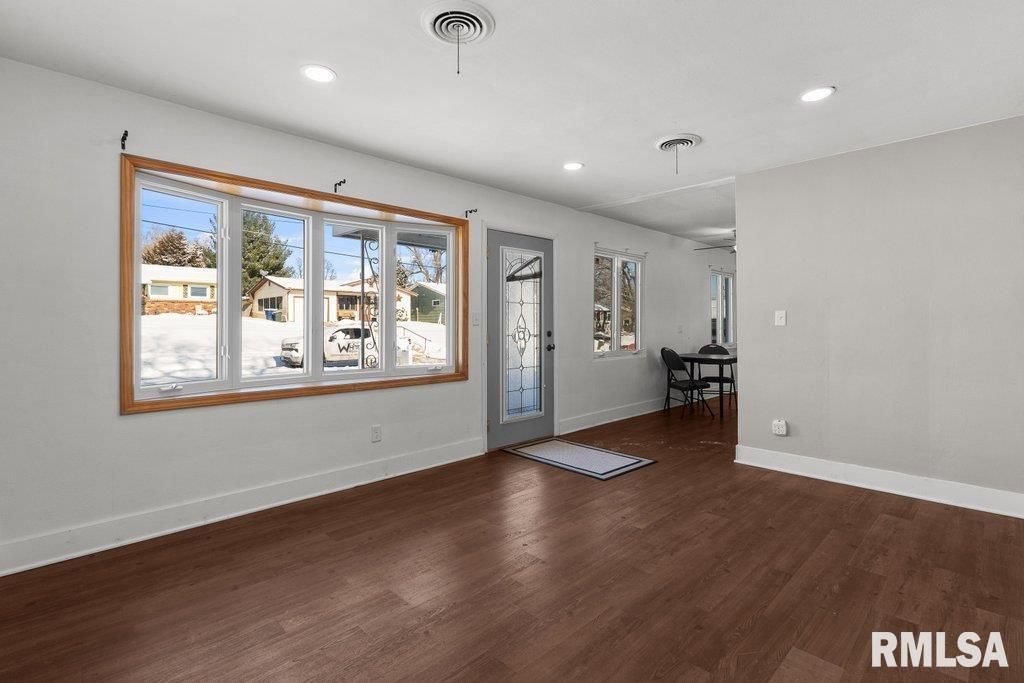 Updated and move-in ready slab home tucked away on a quiet dead-end street. Enjoy a private deck overlooking a spacious backyard-perfect for relaxing or entertaining-plus the convenience of two sheds for extra storage. A peaceful setting with modern updates and great outdoor space. The listing agent is a licensed managing broker in the states of Illinois and Iowa.