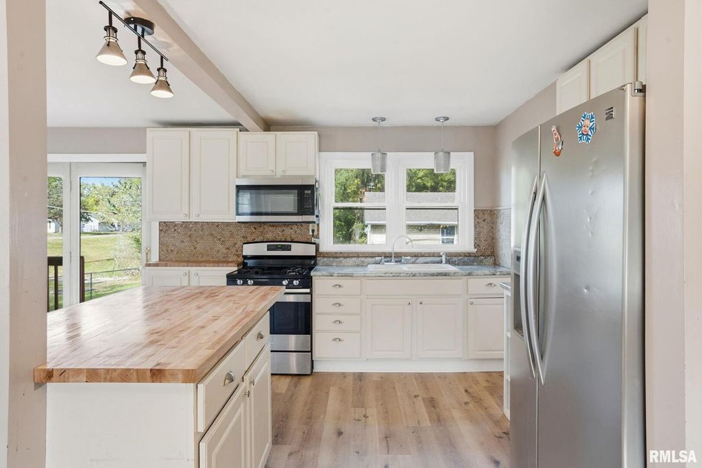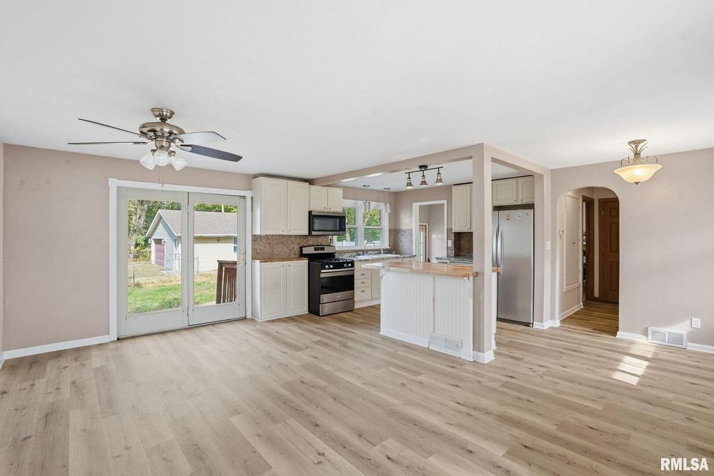 Come check out this amazing 3-bedroom, 2 full-bath, 3-car garage East Moline ranch home! You will love the openness of the beautiful living room, featuring gorgeous vaulted ceilings that flow seamlessly into your open dining and stylish kitchen area, all of which are adorned with luxury vinyl flooring. There are two bedrooms on the main level, both with hardwood floors, as well as a full bath. The lower level features a large third bedroom and a second full bathroom. There is also a spacious storage area. Enjoy relaxing on your patio, overlooking your large, fenced-in yard that is just over half an acre! Schedule your showing today!