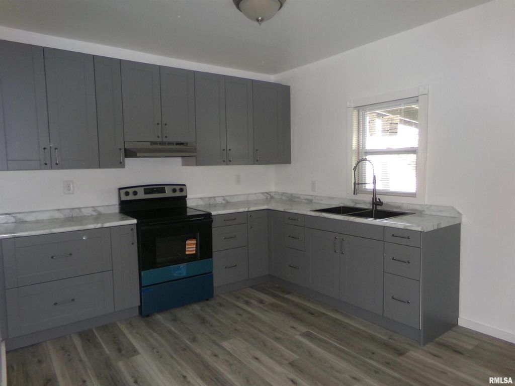 This home is ready for you.......Repairs and updates done in 2025.... All new kitchen; including cabinets, sink, Range, flooring and paint. New bathrooms, full bath has soaker tub with shower, toilet, and vanity, Half bath with toilet and sink/ laundry room, Features large living room, 3 bedrooms, all with new flooring and fresh paint, New Front porch. Al;so has a 12x 24 covered porch on the back of the home with a privacy fence, sitting on a corner lot with a parking pad that is 37x 23, which you could built a garage or add a carport.....and a basement for storage or to go on those stormy days....COME CHECK IT OUT